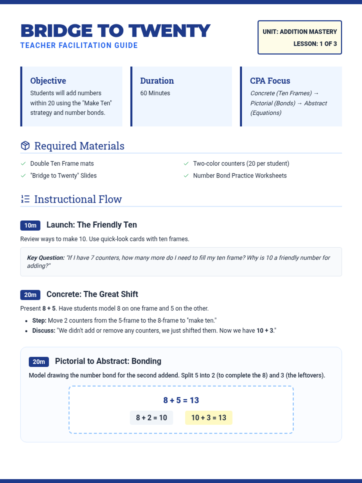 Expands place value understanding to numbers up to 50, focusing on counting large collections by grouping into tens.