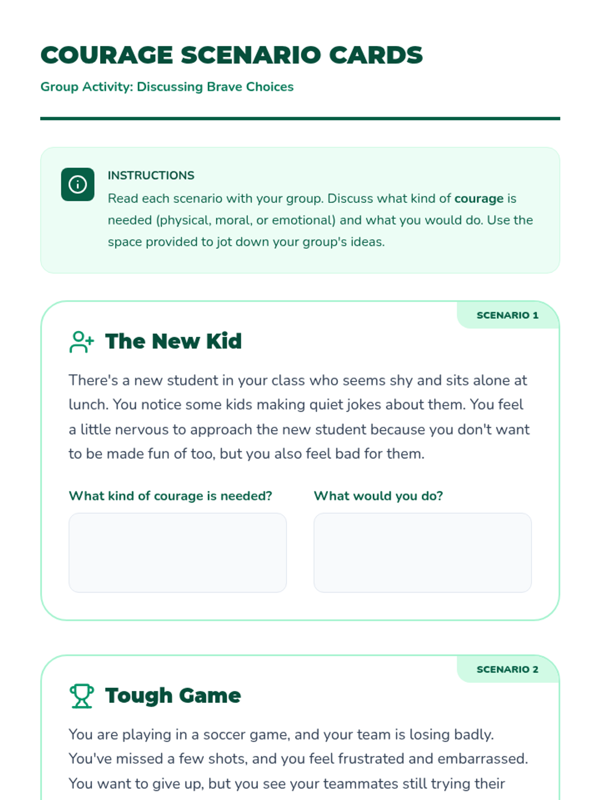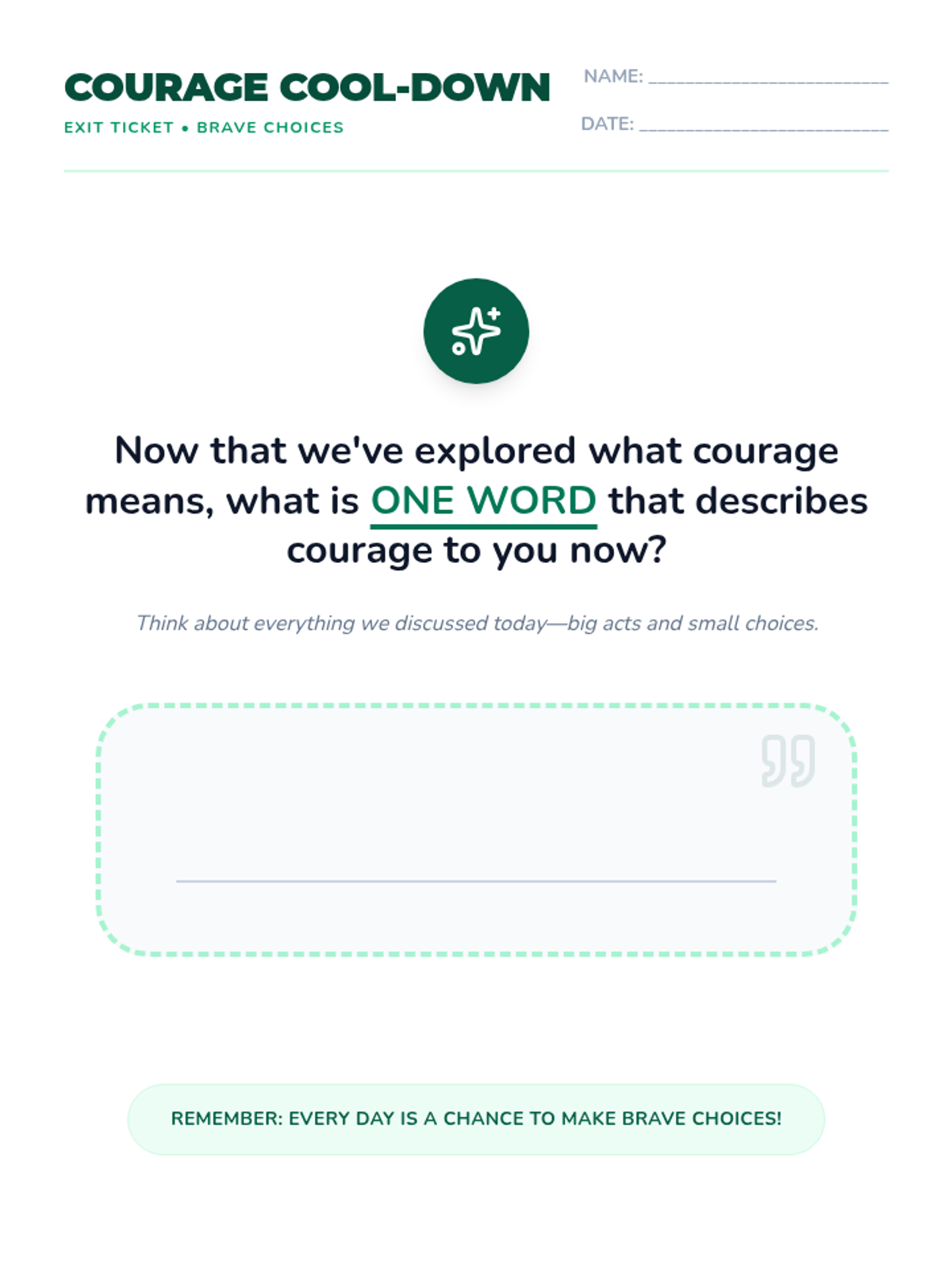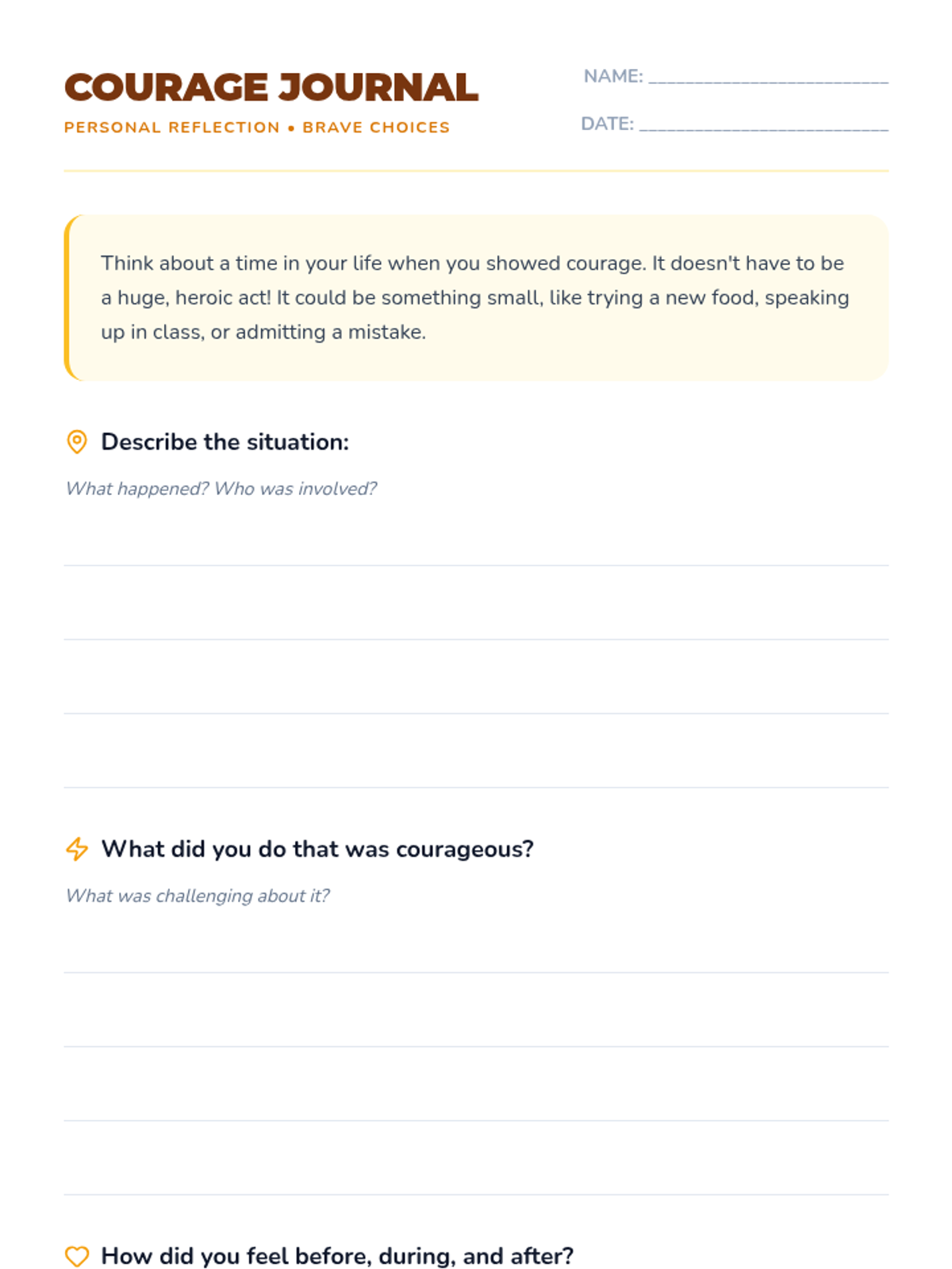 This lesson helps 5th-grade students understand what courage is, recognize different forms of bravery, and identify ways they can demonstrate courage in their daily lives.