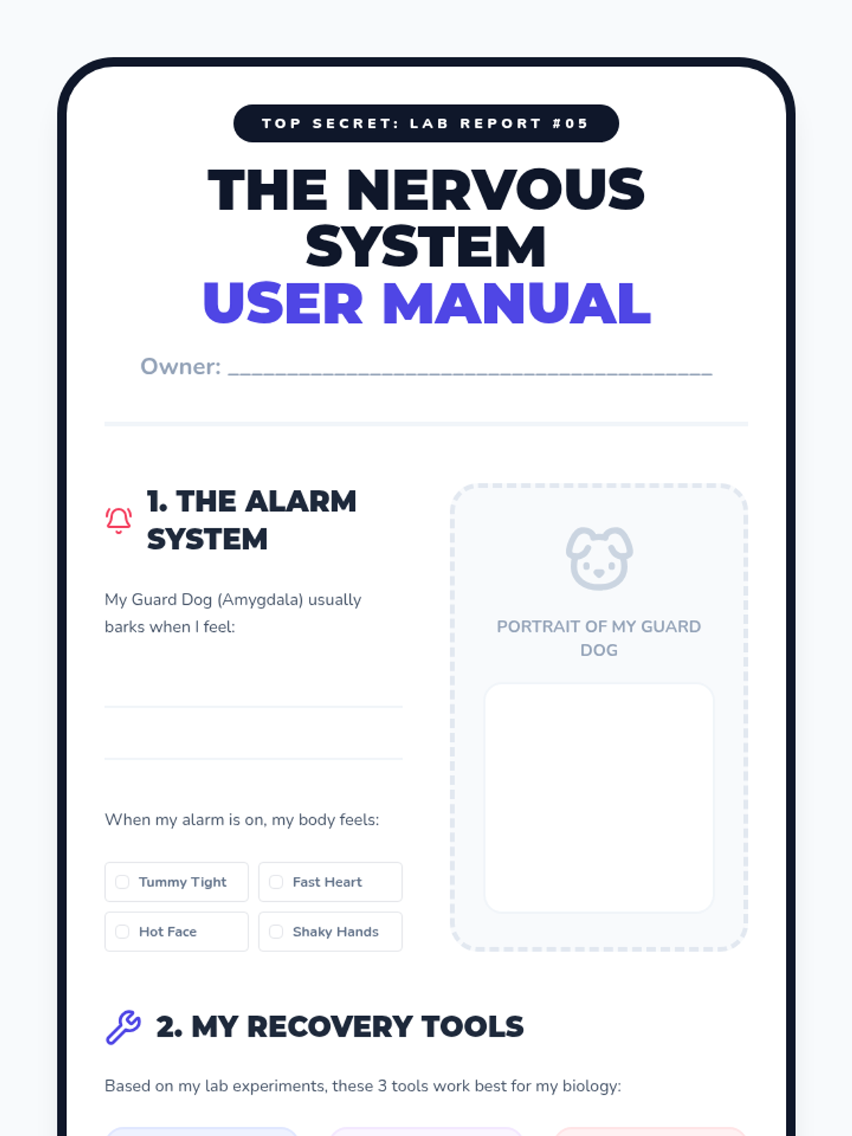 Students synthesize their findings into a personal 'User Manual' or Lab Report, detailing which scientific strategies (breath, pressure, rhythm) work best to reset their specific biology.