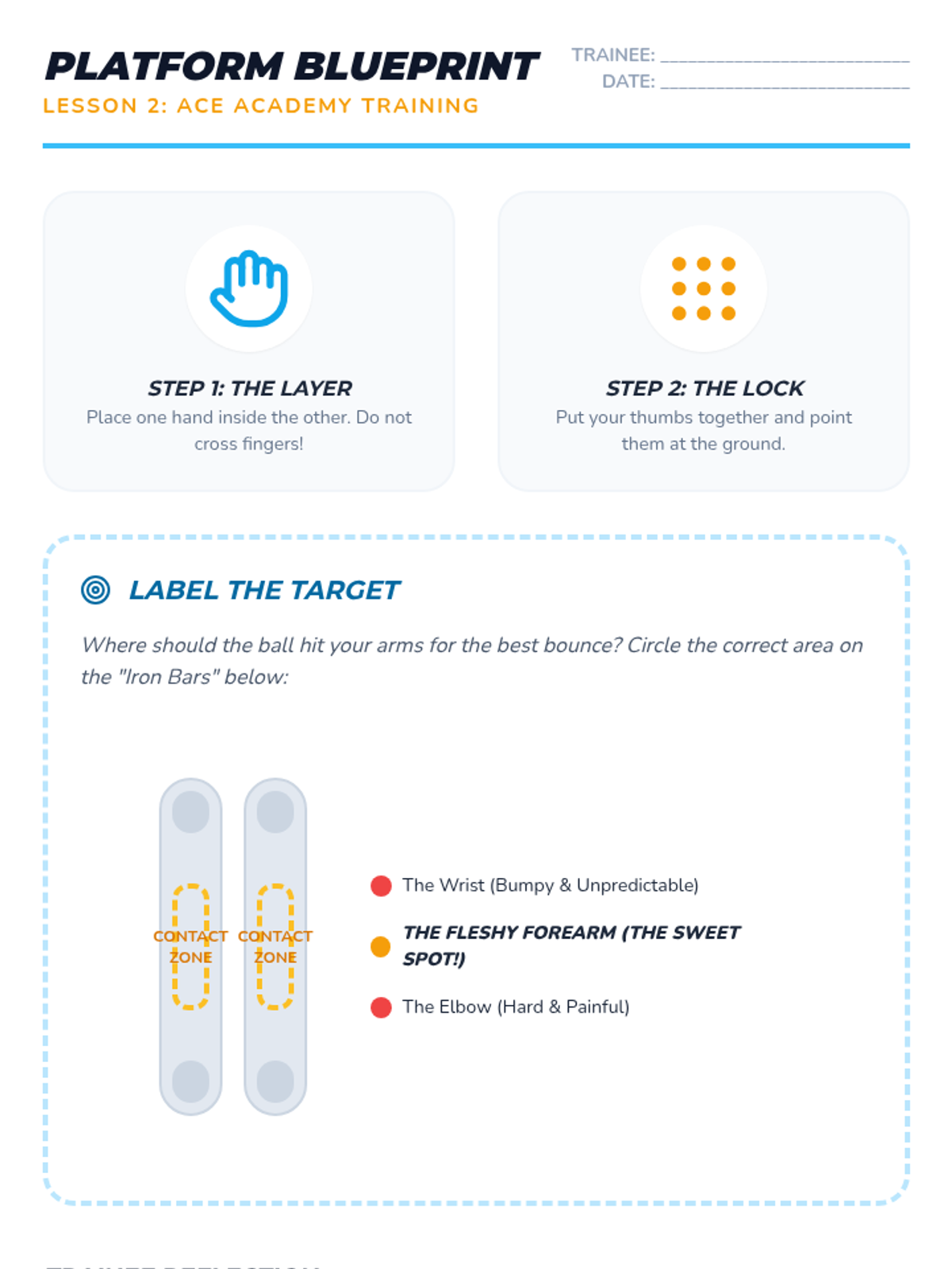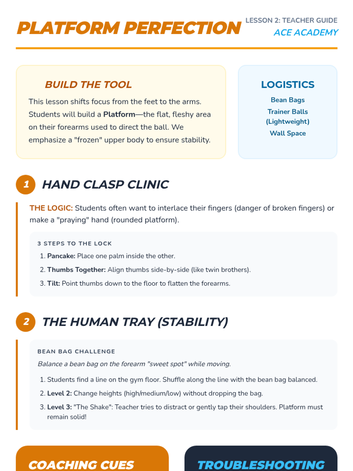 Focuses on hand placement and arm extension to create a flat, stable platform for the ball to bounce off of.