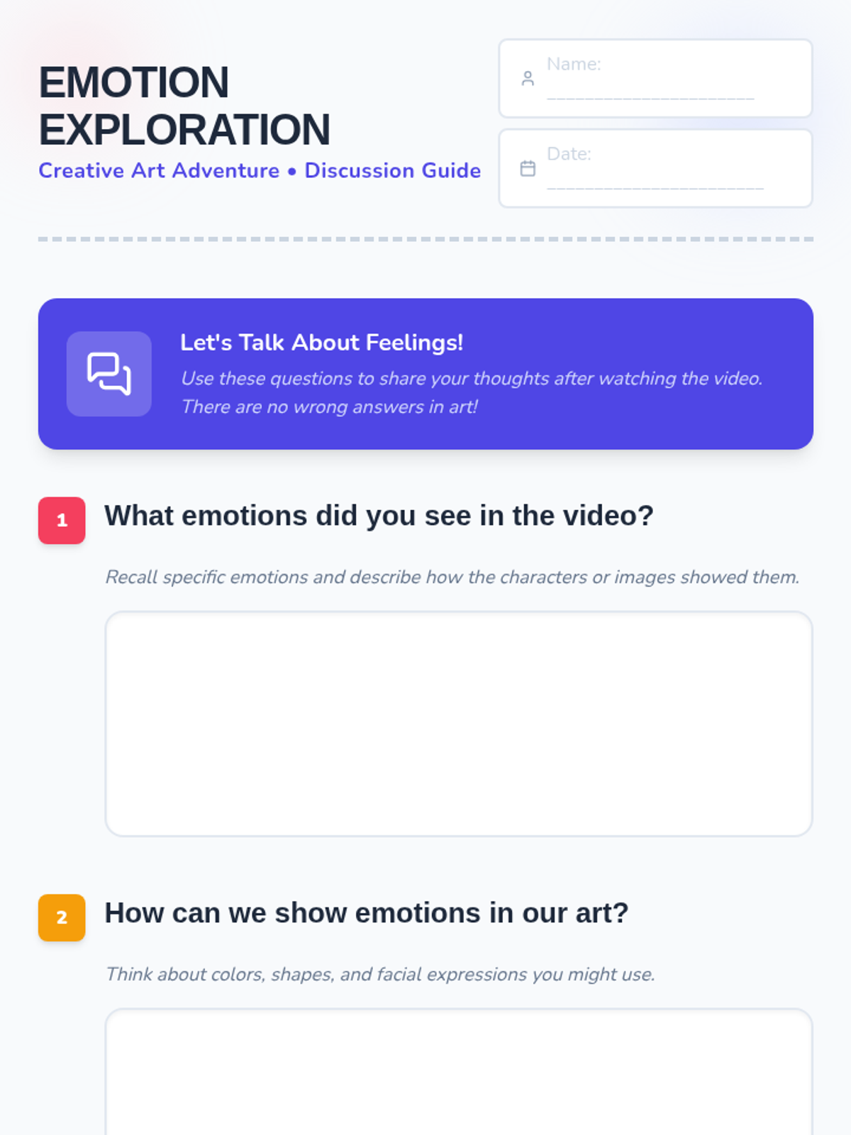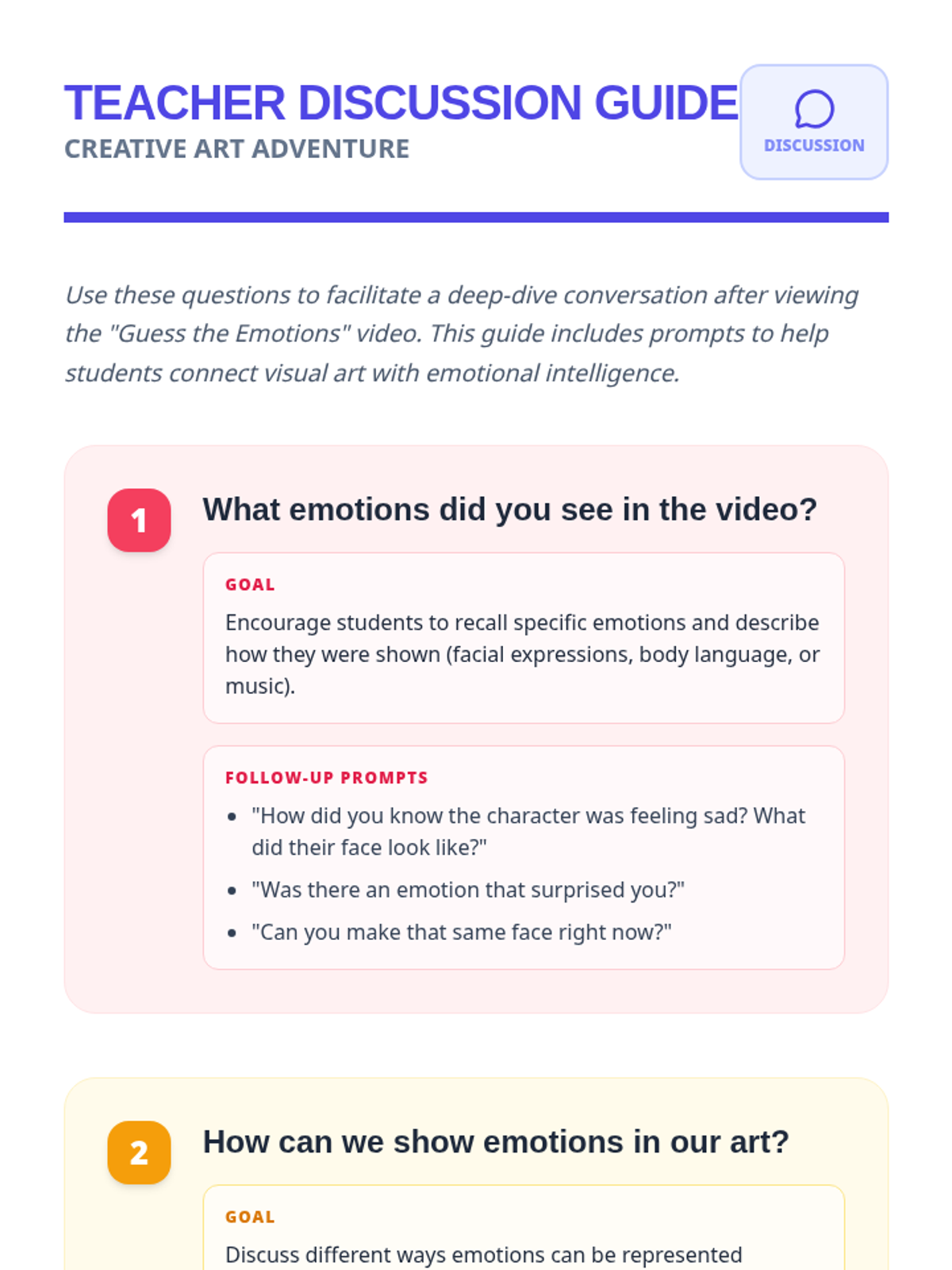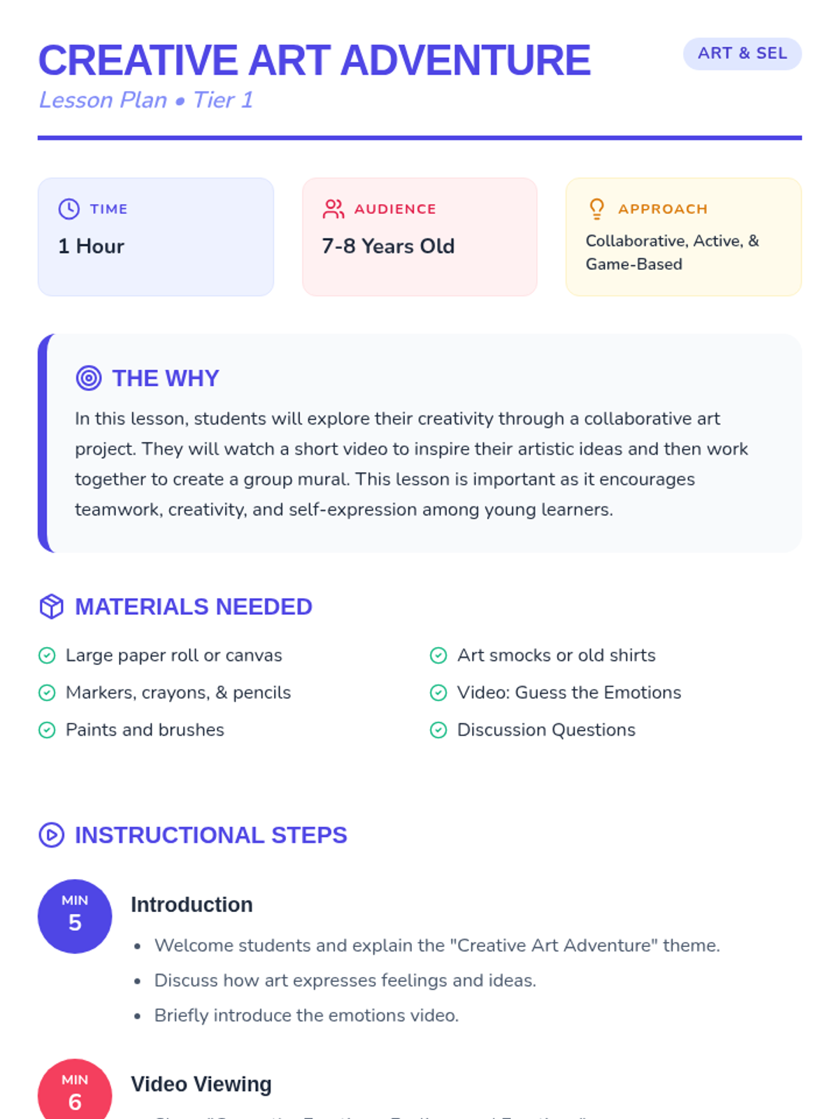 A collaborative art lesson for 7-8 year olds exploring emotions through a group mural project and a video about feelings.