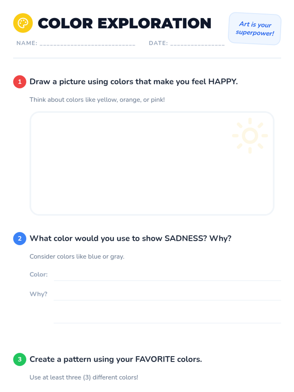A comprehensive substitute-friendly lesson introducing the 7 Elements of Art to students in grades K-3 through visual exploration and hands-on practice.
