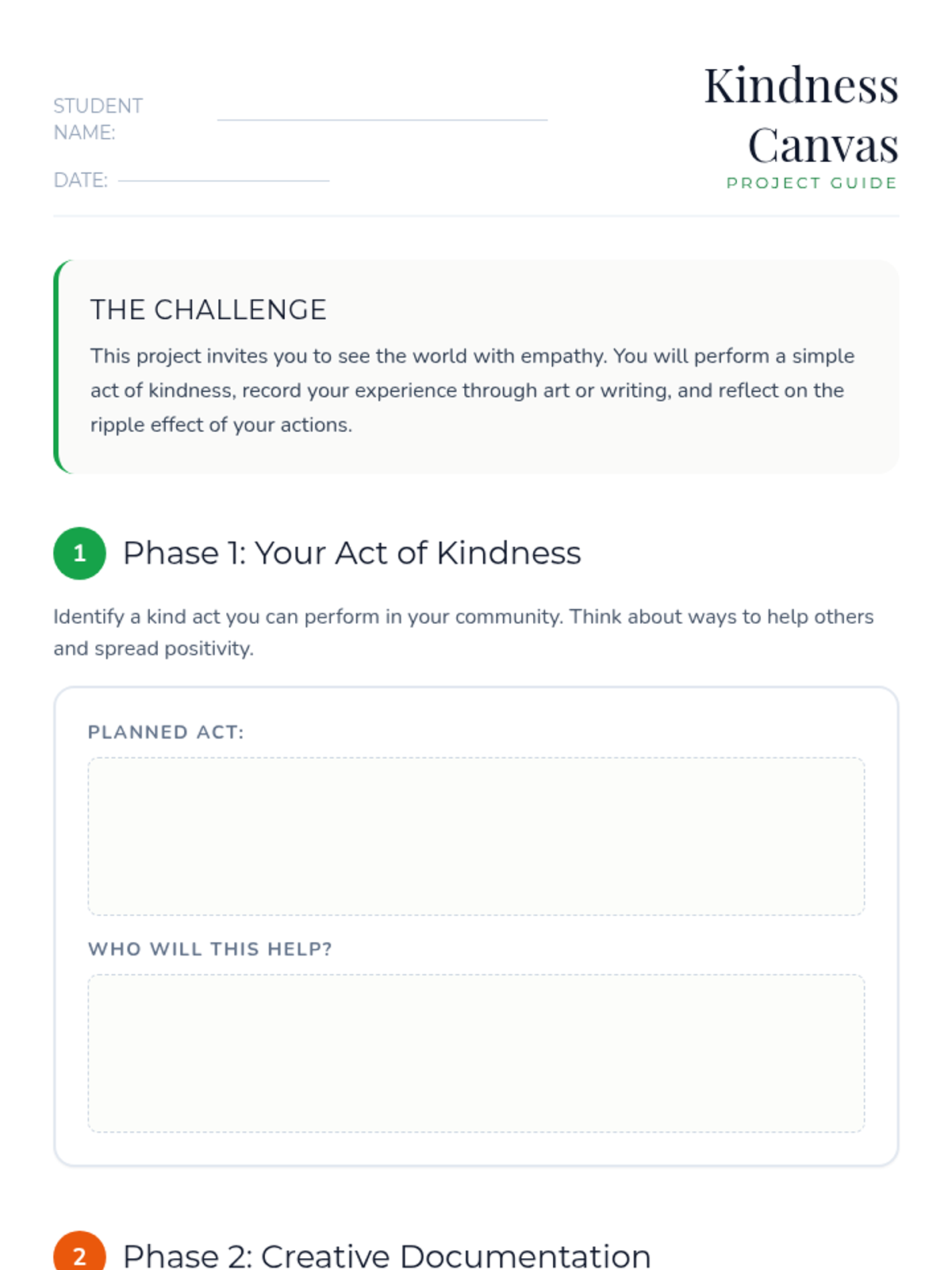 A multi-day project where students engage in community acts of kindness and document their journey through creative expression to foster empathy.