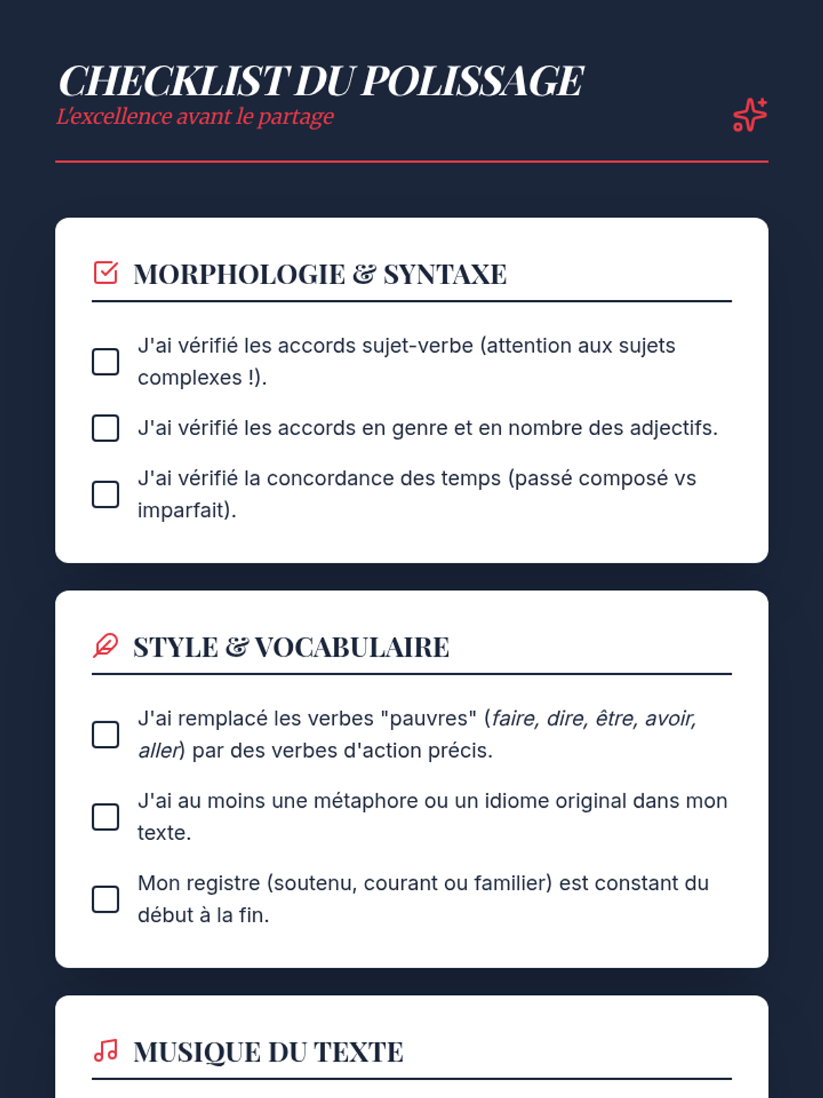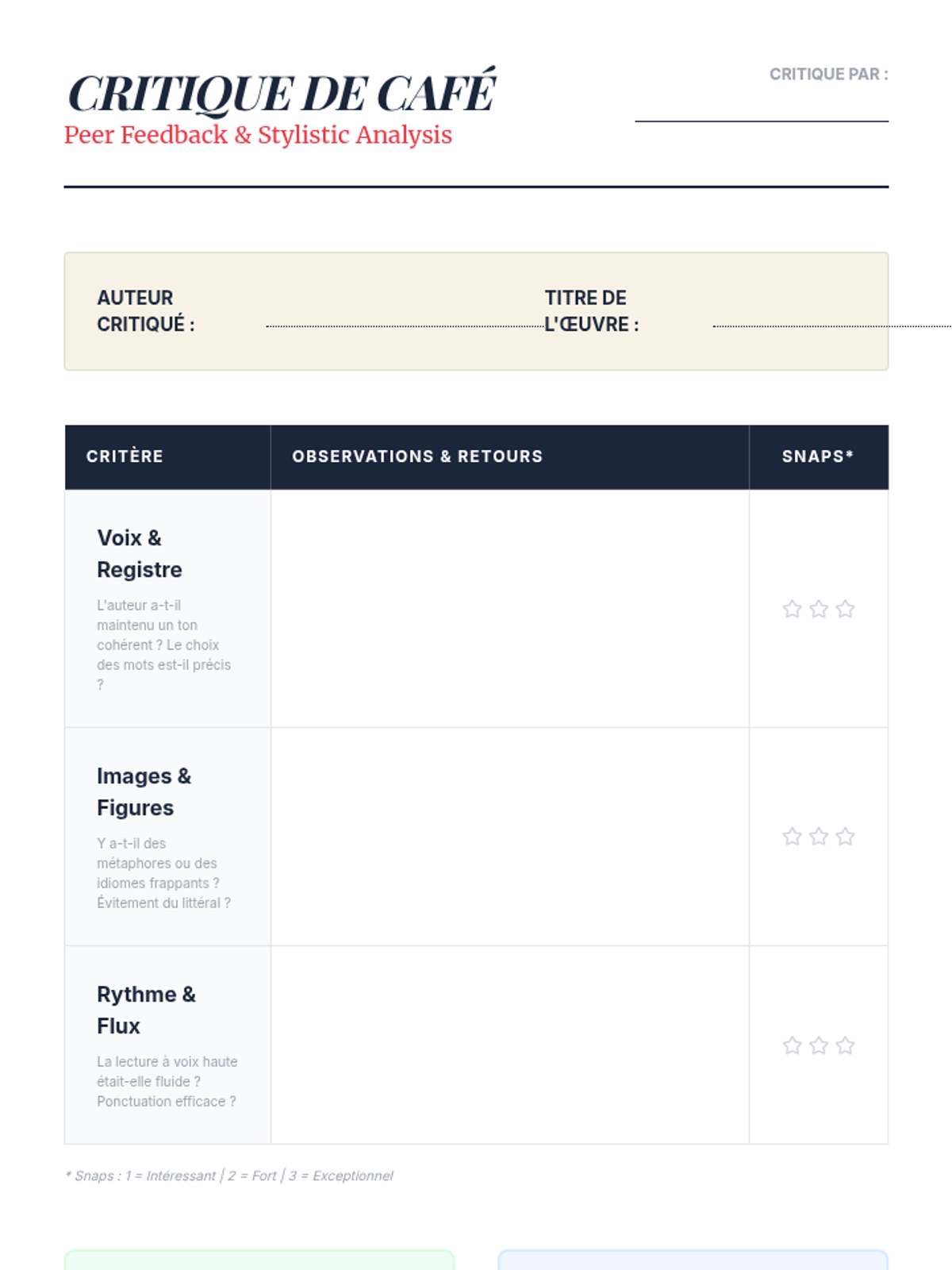 The sequence culminates in a polished creative piece, emphasizing the oral rhythm of language through a 'Café Littéraire' reading and peer critique.