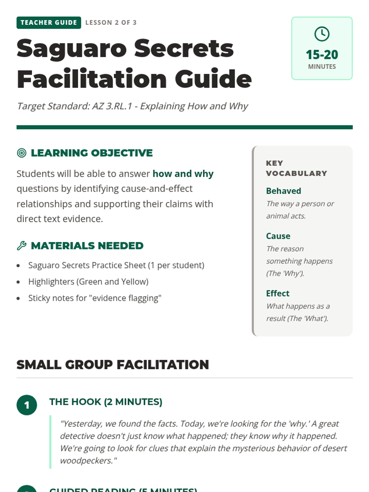 Students tackle 'how and why' questions, learning to link character actions to specific text evidence in a story about a mysterious cactus.