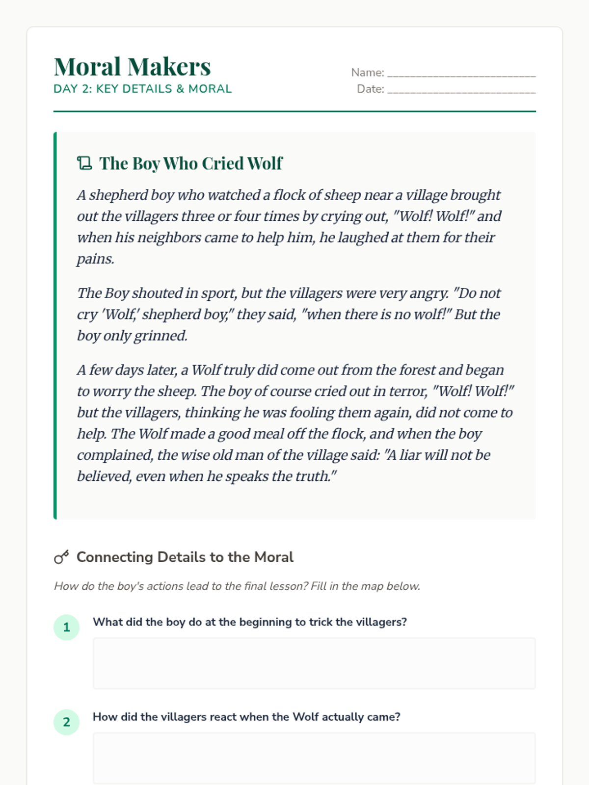 Analyzing how key details lead to the moral in 'The Boy Who Cried Wolf'.