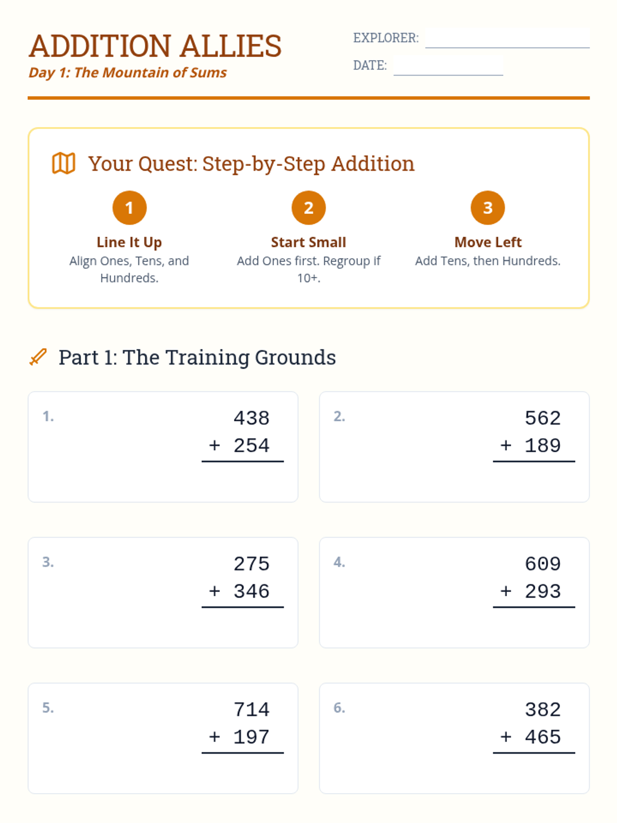 Mastering addition within 1000 using the standard algorithm and partial sums strategies with a focus on regrouping.