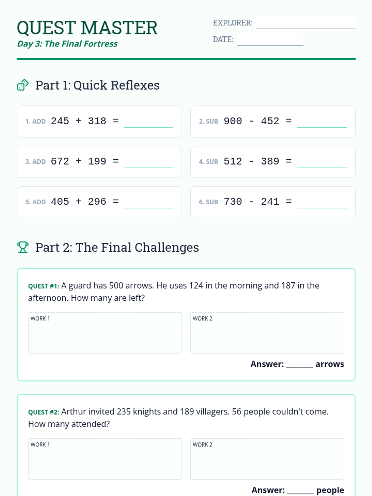 Applying addition and subtraction skills to solve multi-step word problems and mixed operations challenges.