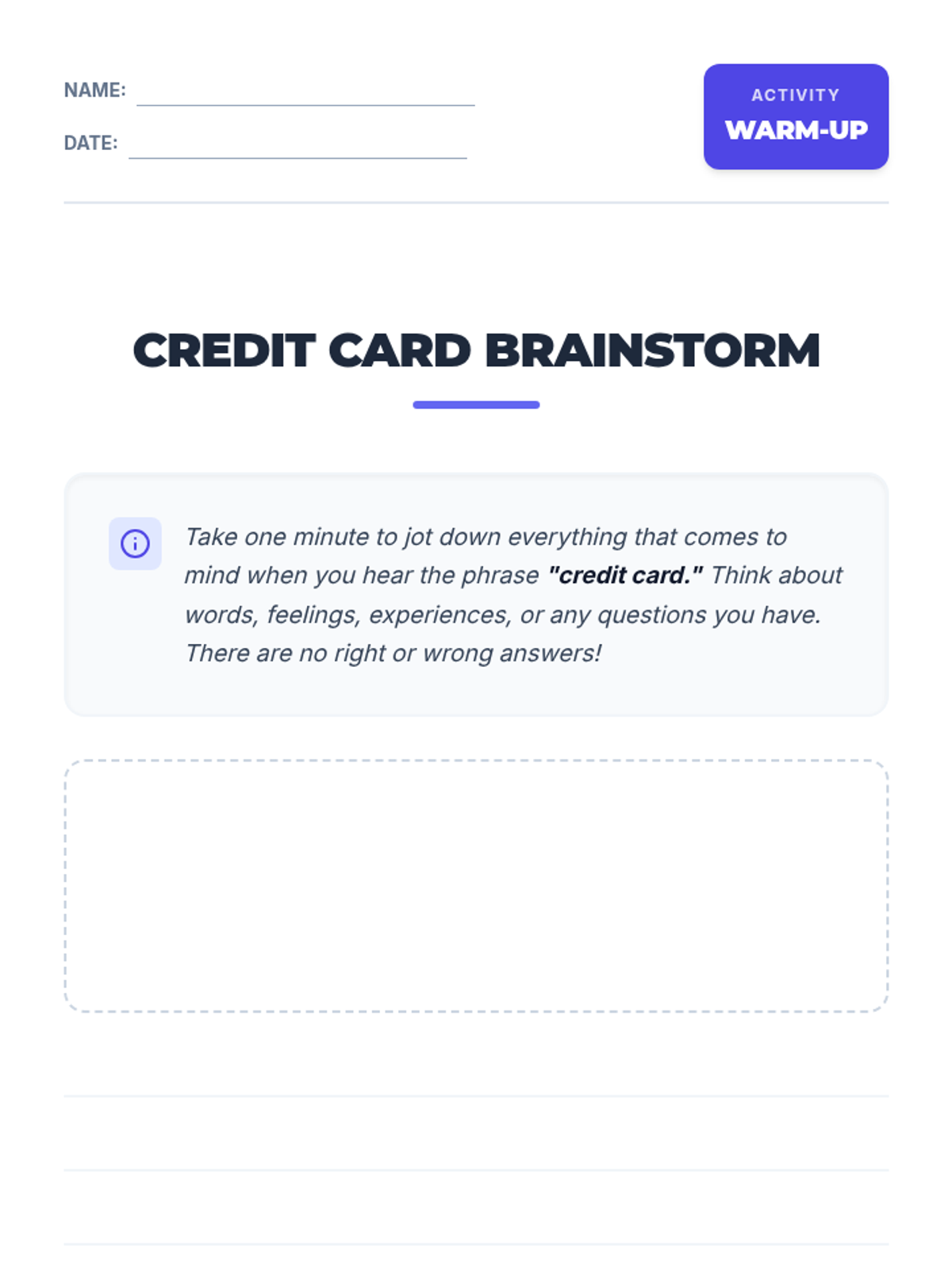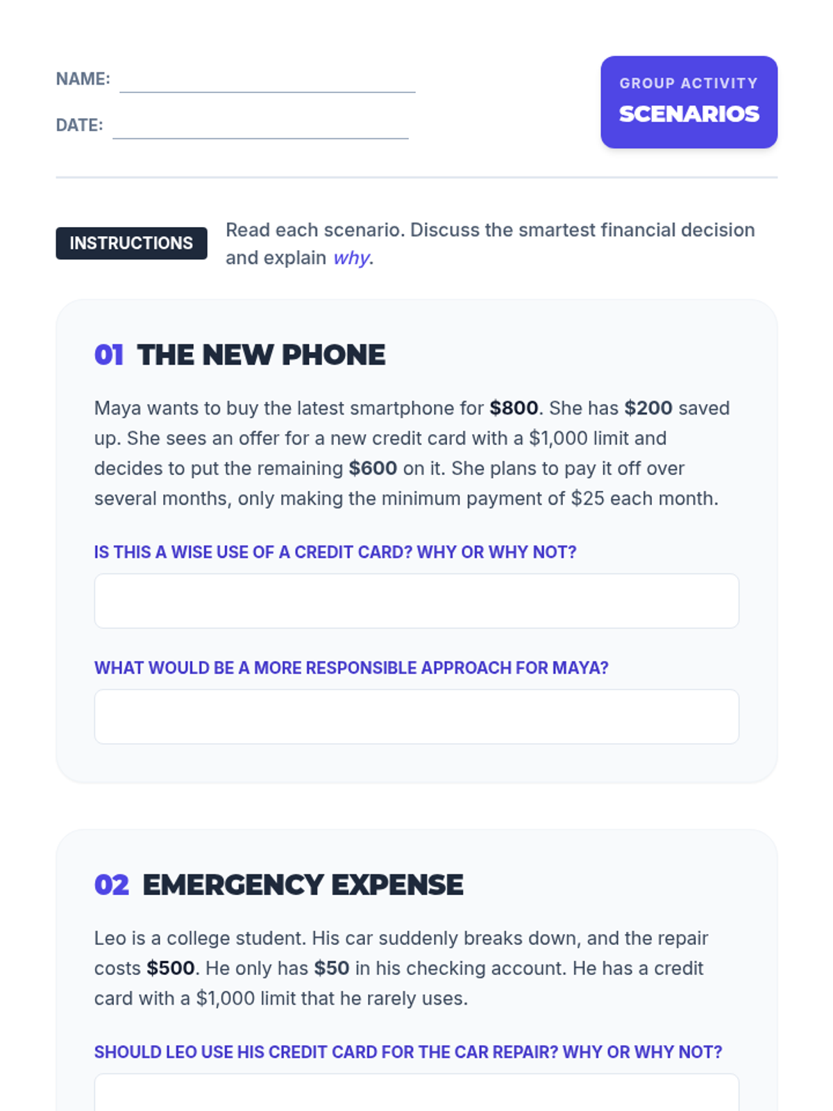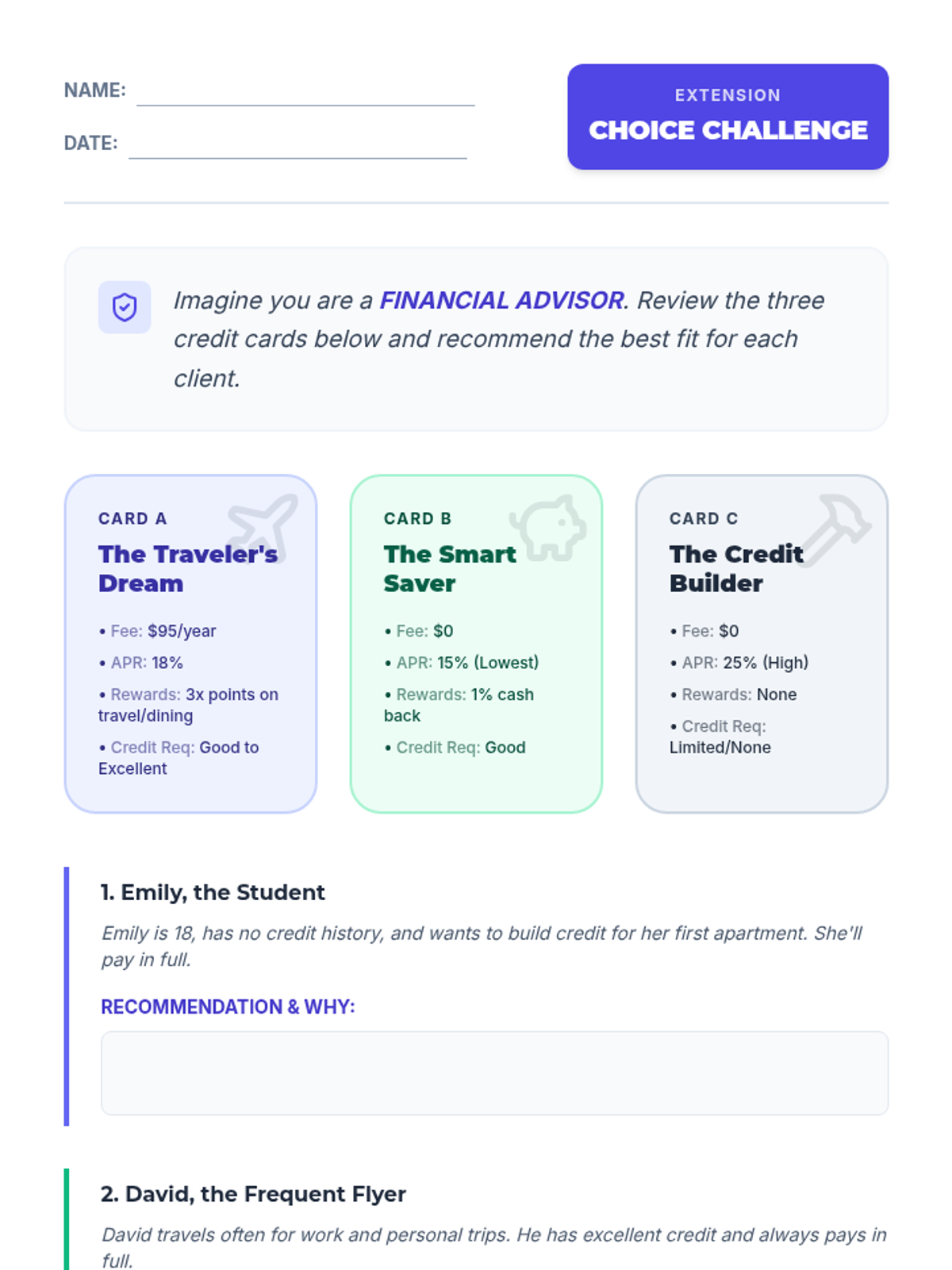 A 30-minute financial literacy lesson for 9th graders exploring the benefits and risks of credit cards, with a focus on interest and responsible payment strategies.