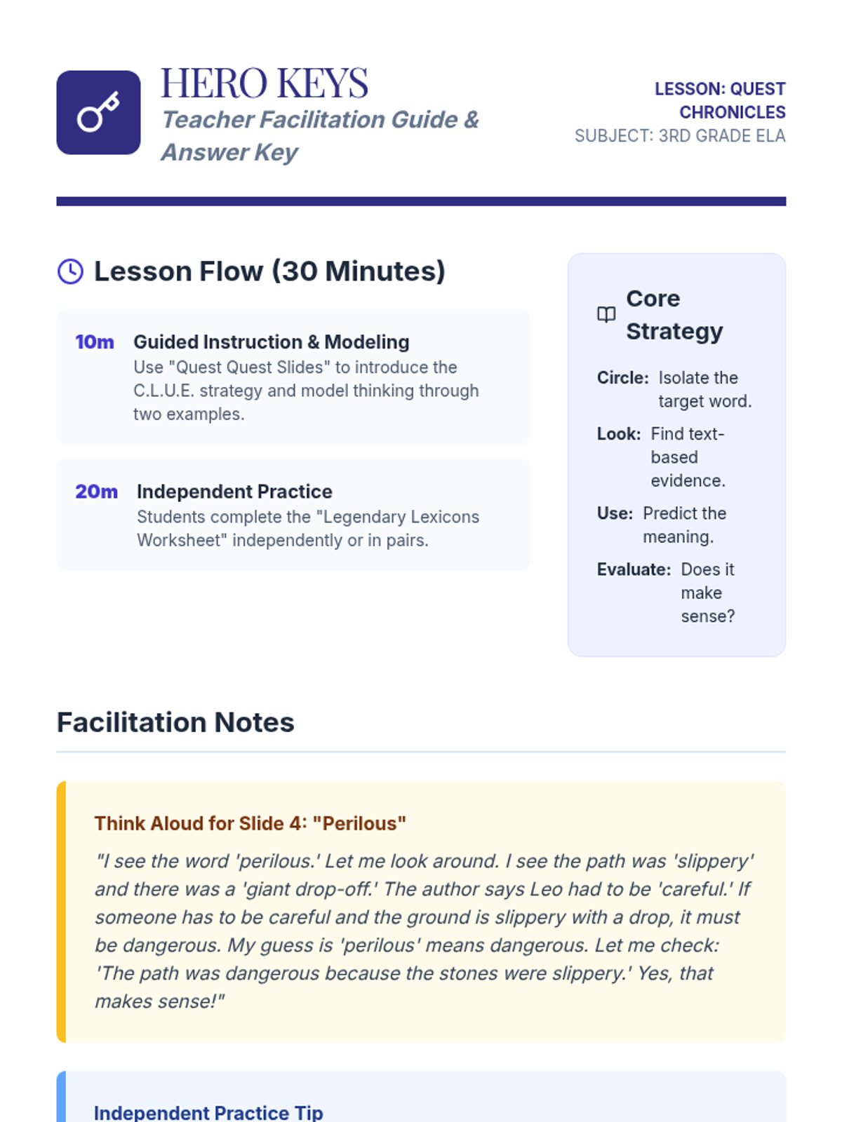 A high-impact, 45-minute reading comprehension lesson for grades 3-5 using UDL principles. Students act as 'Clue Catchers' to analyze a rich short text through close reading, collaborative discussion, and choice-based expression.