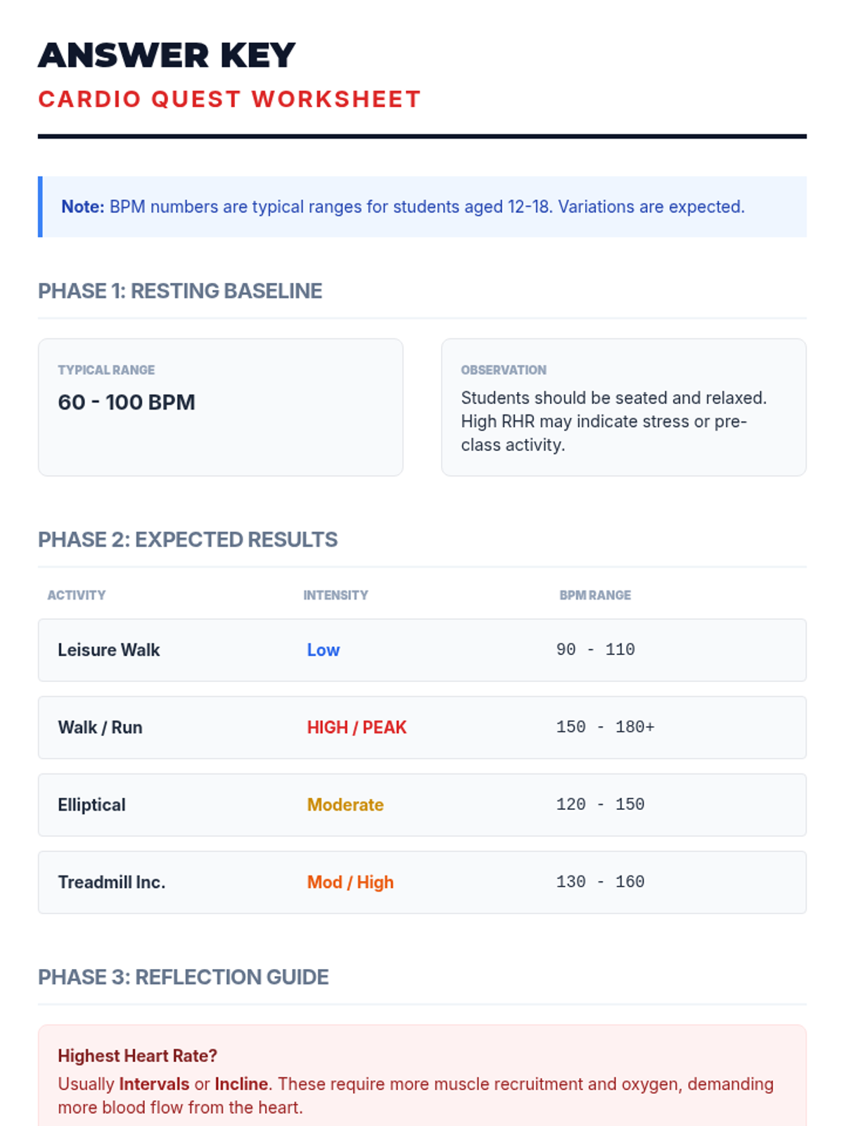 A high-energy lesson focused on understanding heart health through cardiovascular exercise, specifically walking, running, and machine-based cardio. Students will learn to monitor their heart rate and understand the benefits of aerobic activity.