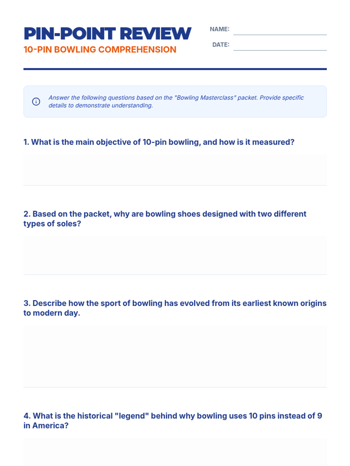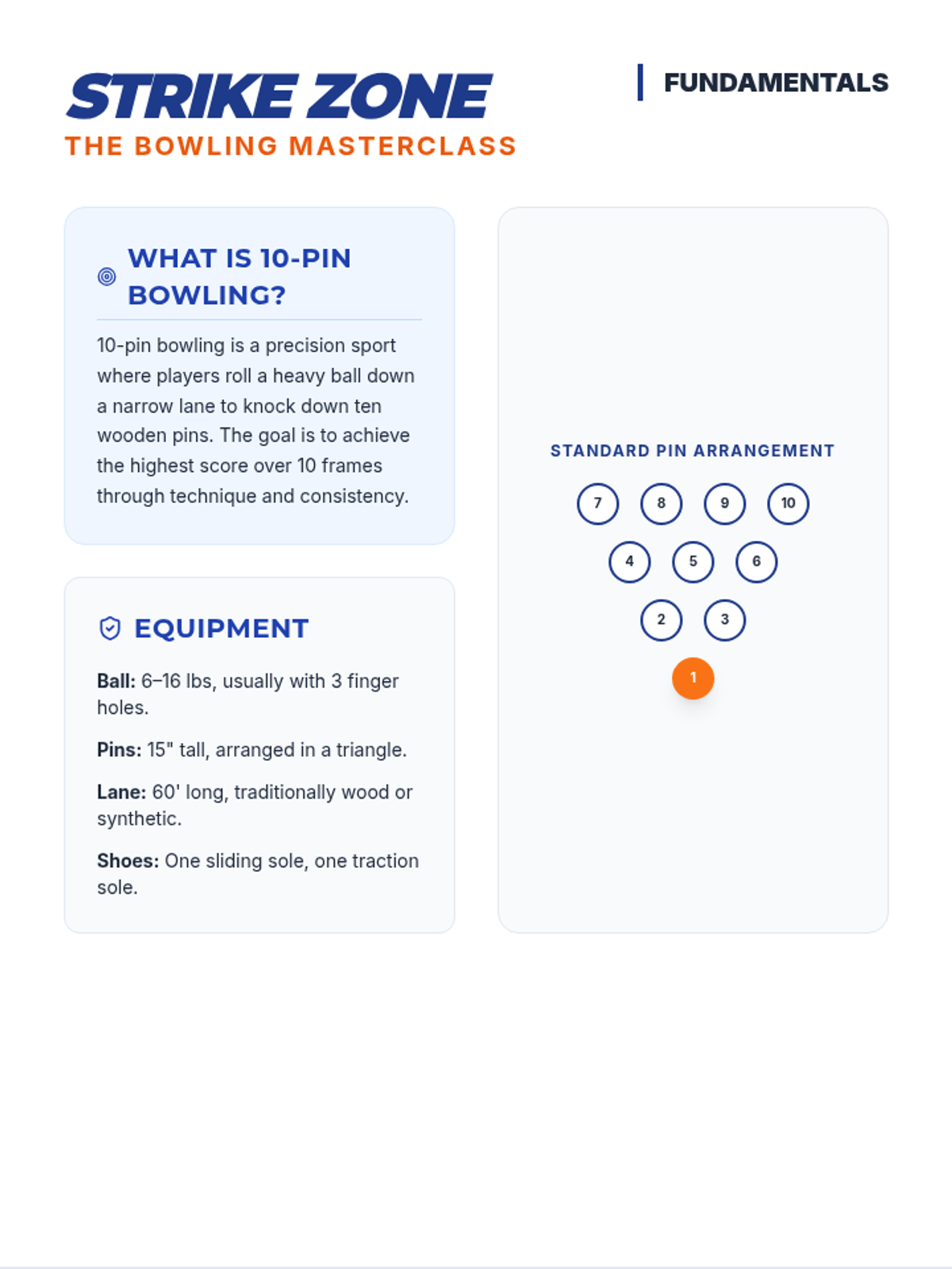 An in-depth exploration of 10-pin bowling, from its ancient origins to modern competitive strategies, including scoring mechanics and etiquette.