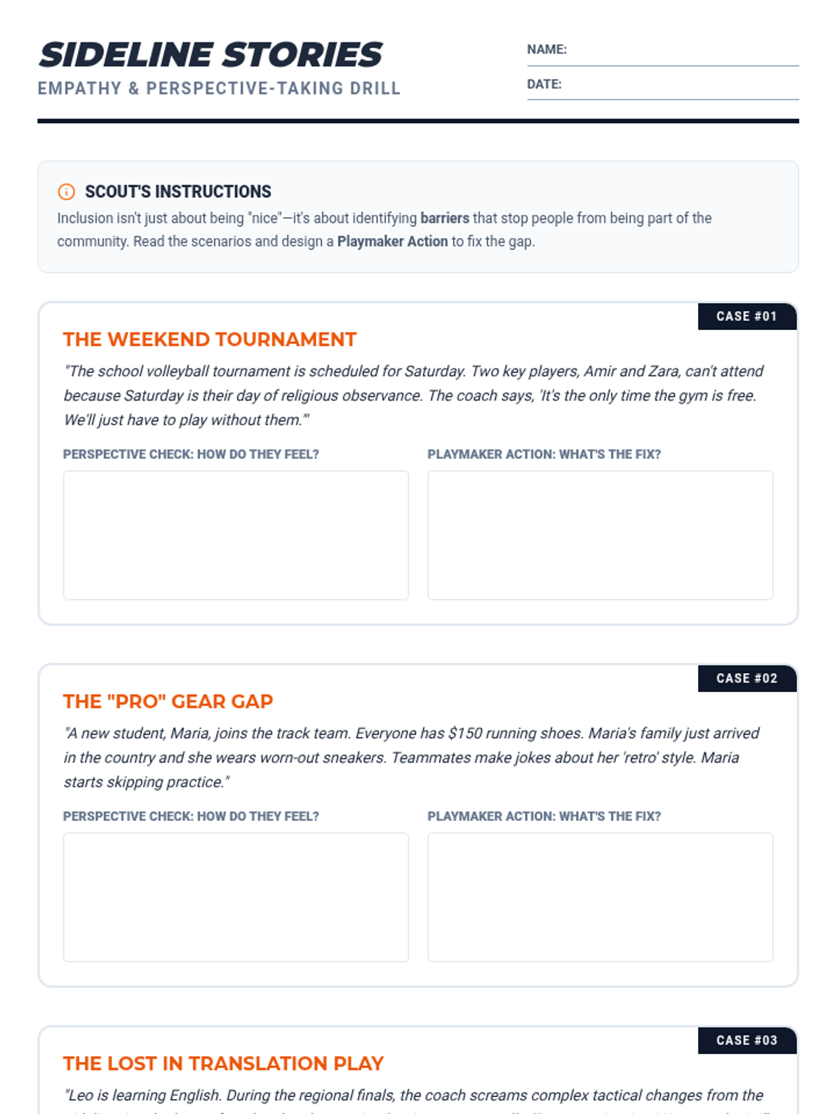 A comprehensive health lesson for Grade 7/8 exploring cultural diversity and inclusion through the lens of sport. Students build empathy and social-emotional skills by analyzing community dynamics and designing inclusive athletic environments.