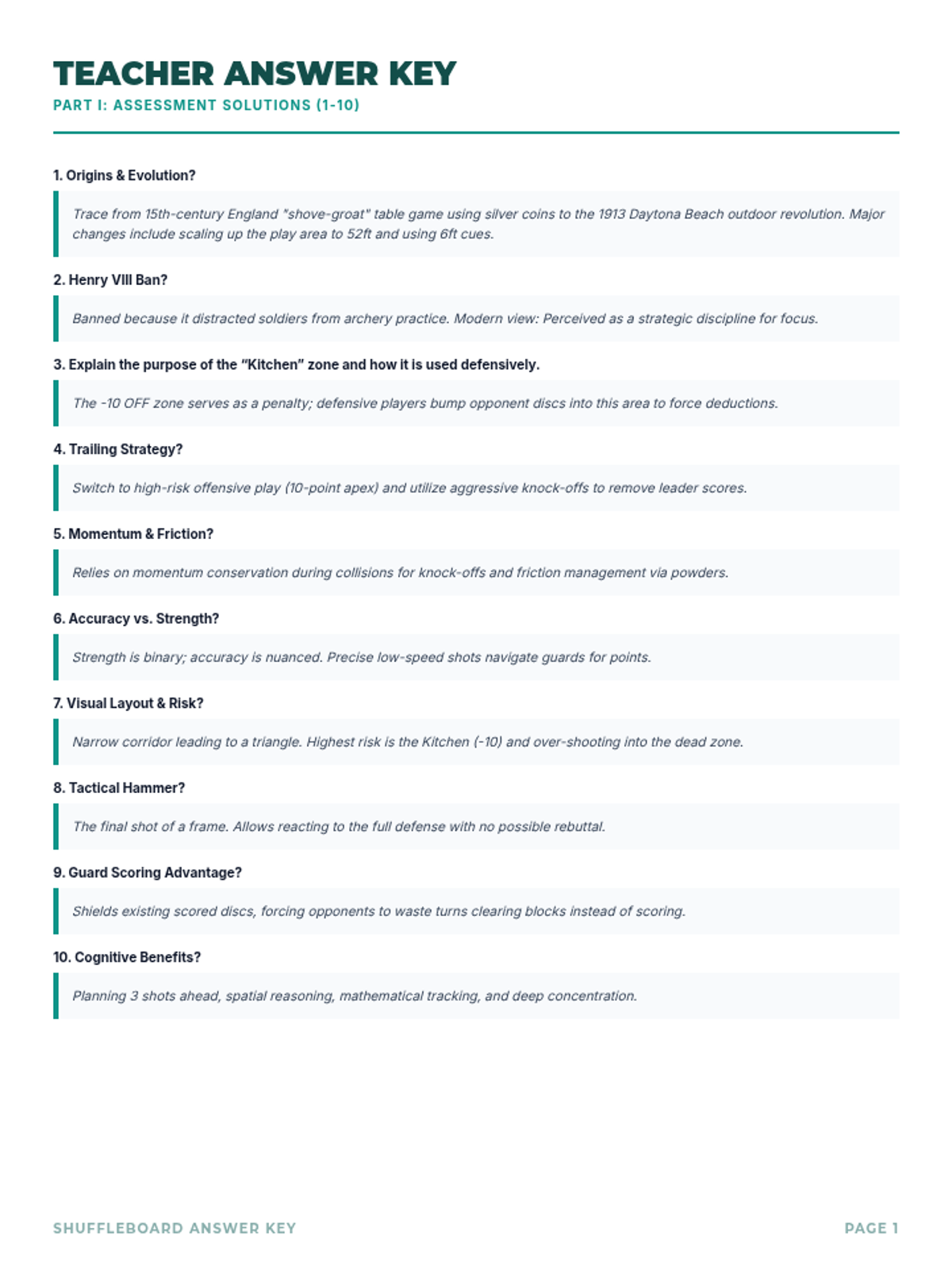 A comprehensive introduction to outdoor shuffleboard for high school students, covering history, equipment, rules, and strategies.