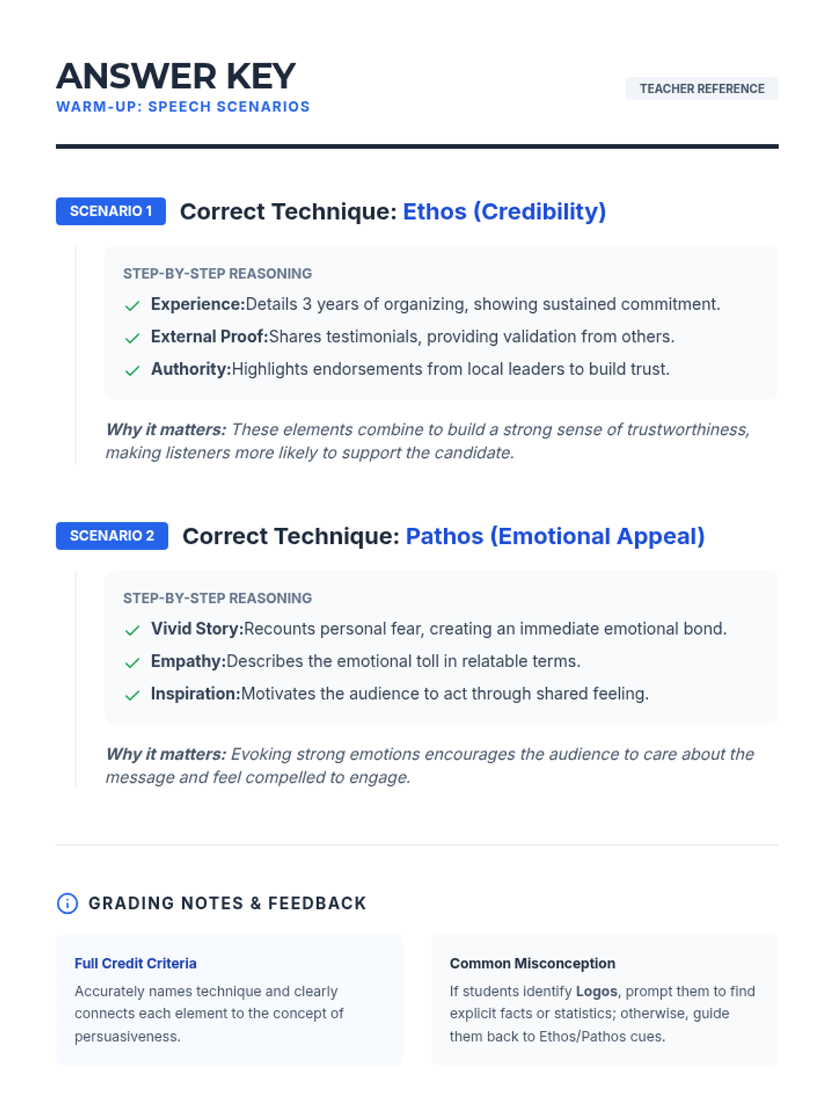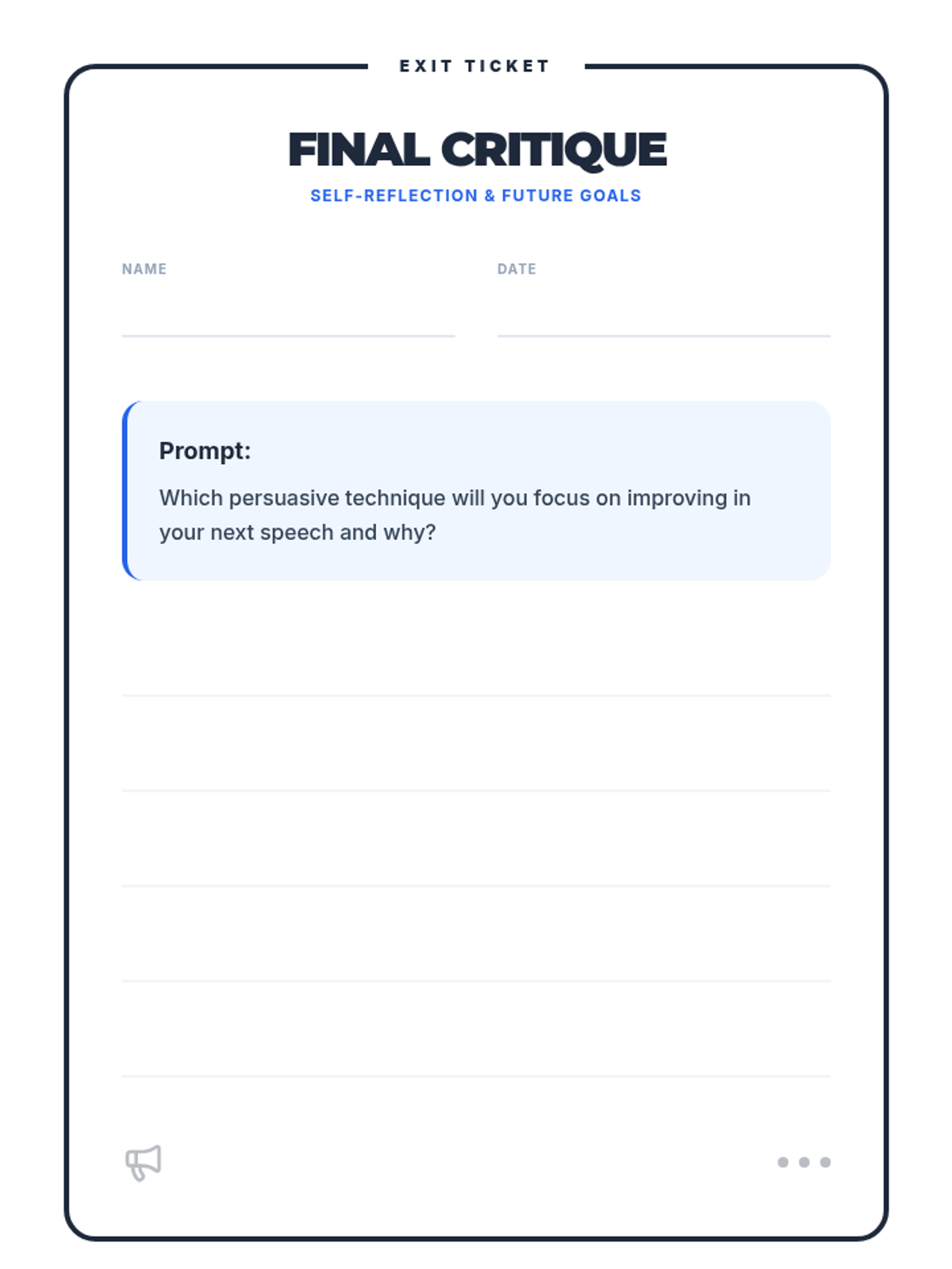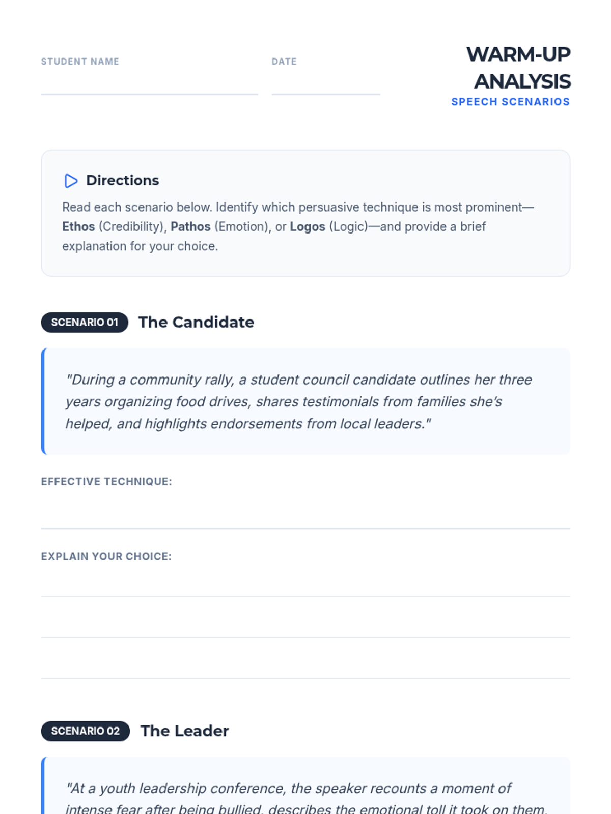 In this 30-minute, single-session lesson, high school students will learn to critically evaluate rhetorical speeches using the I Do, We Do, You Do model. Through guided demonstration, collaborative practice, and independent analysis, students develop skills to assess persuasive techniques and provide constructive feedback.