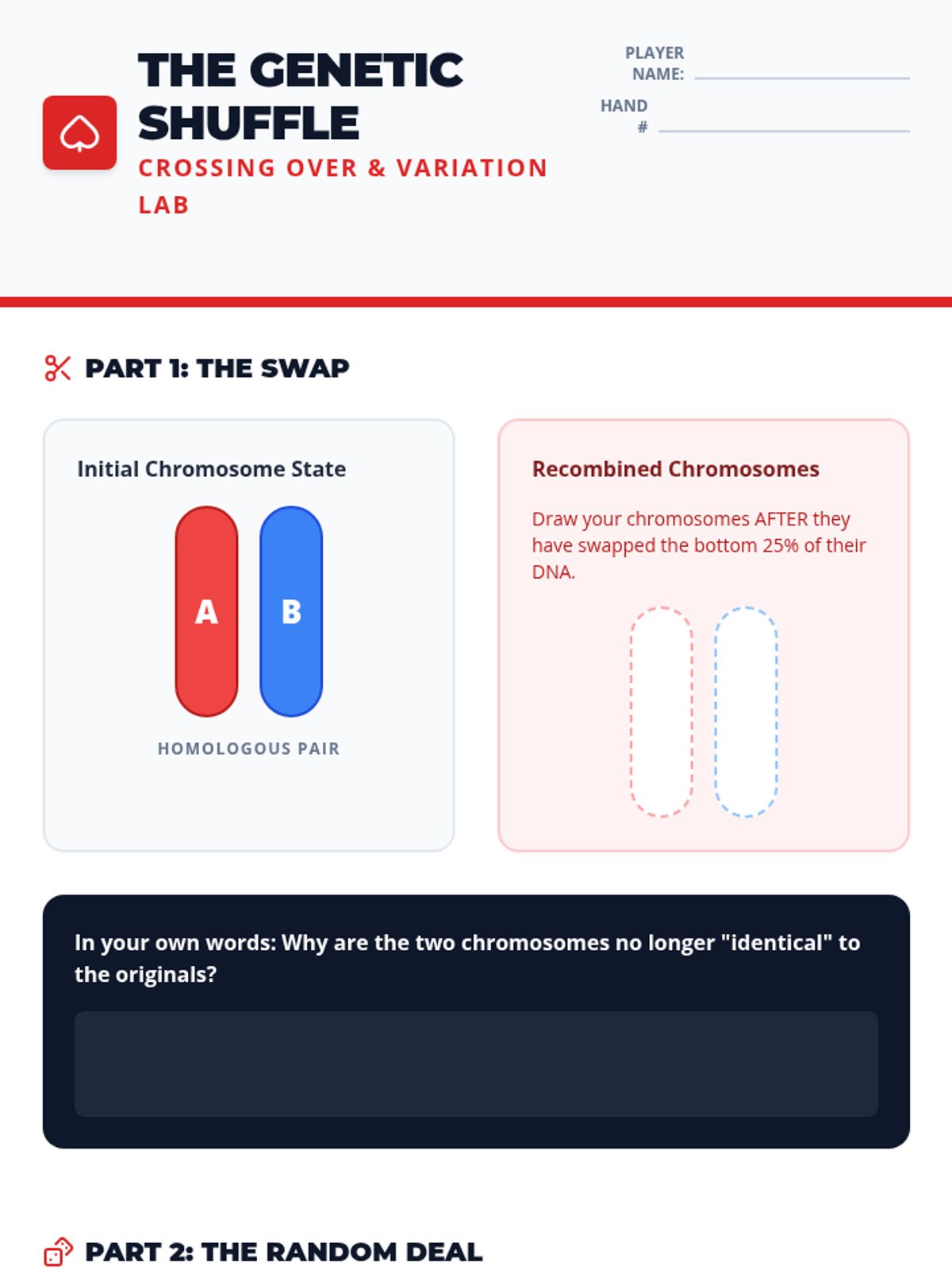 An exploration of Prophase I and the shuffle of genetic material that creates unique chromosome combinations.
