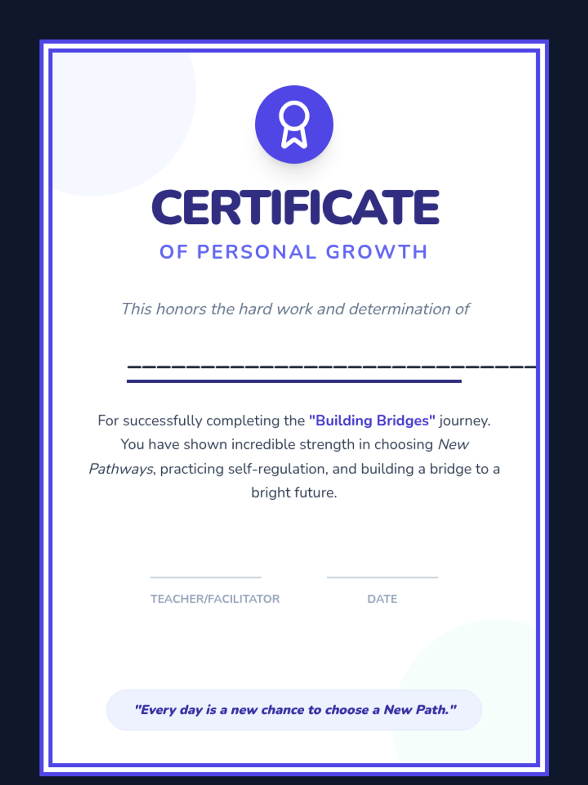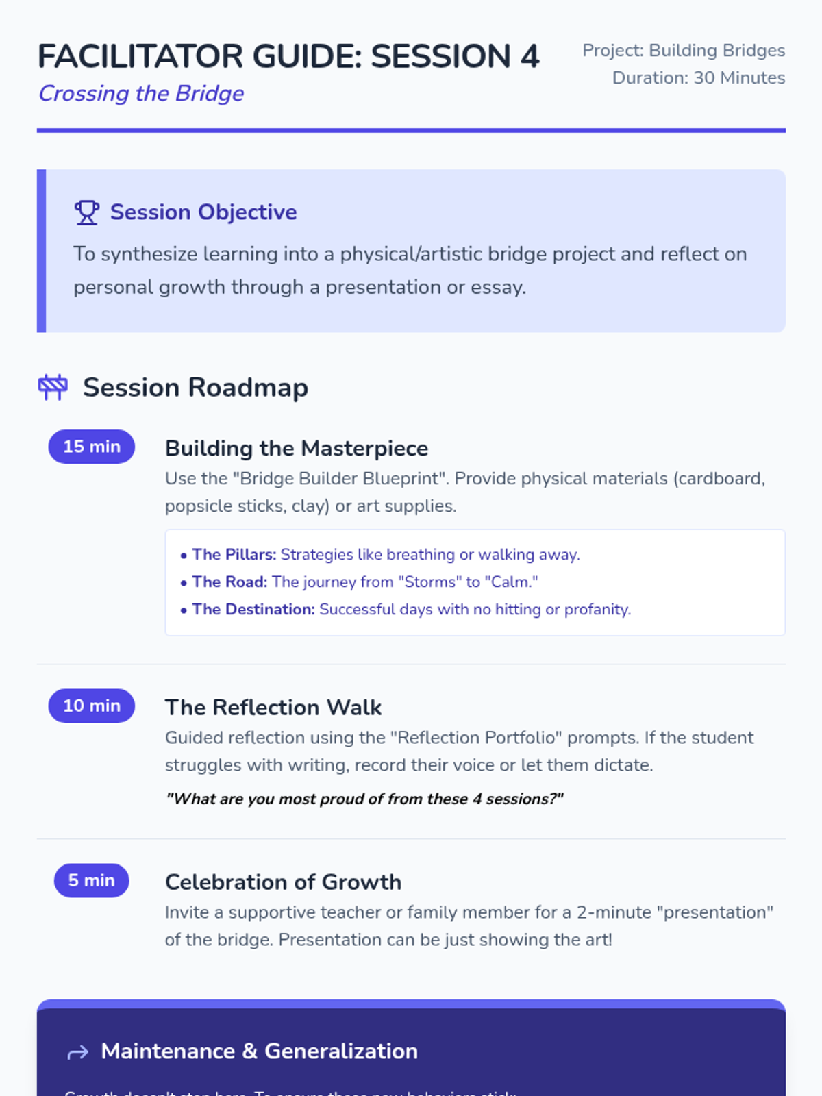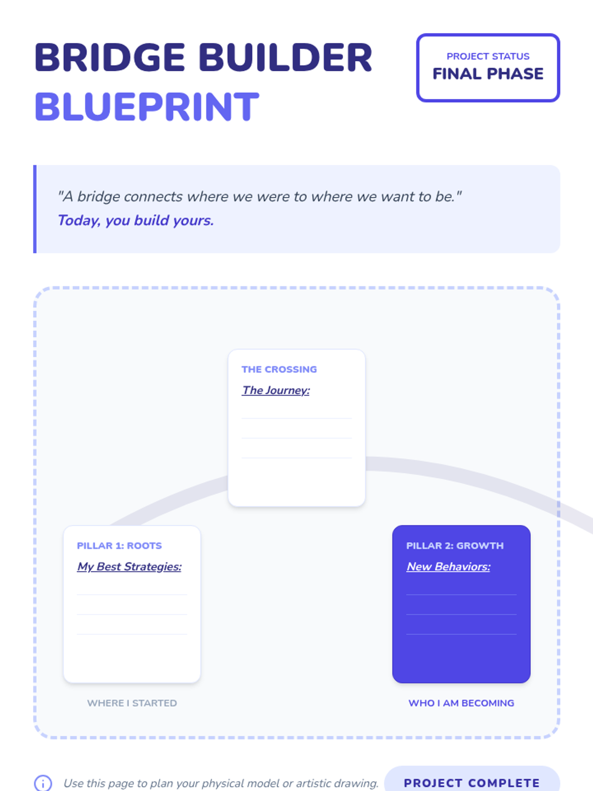 A culminating project where the student builds a symbolic bridge representing their growth and strategies.