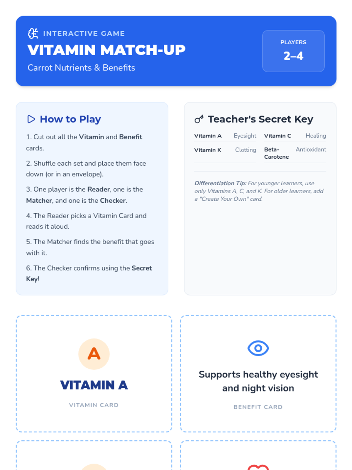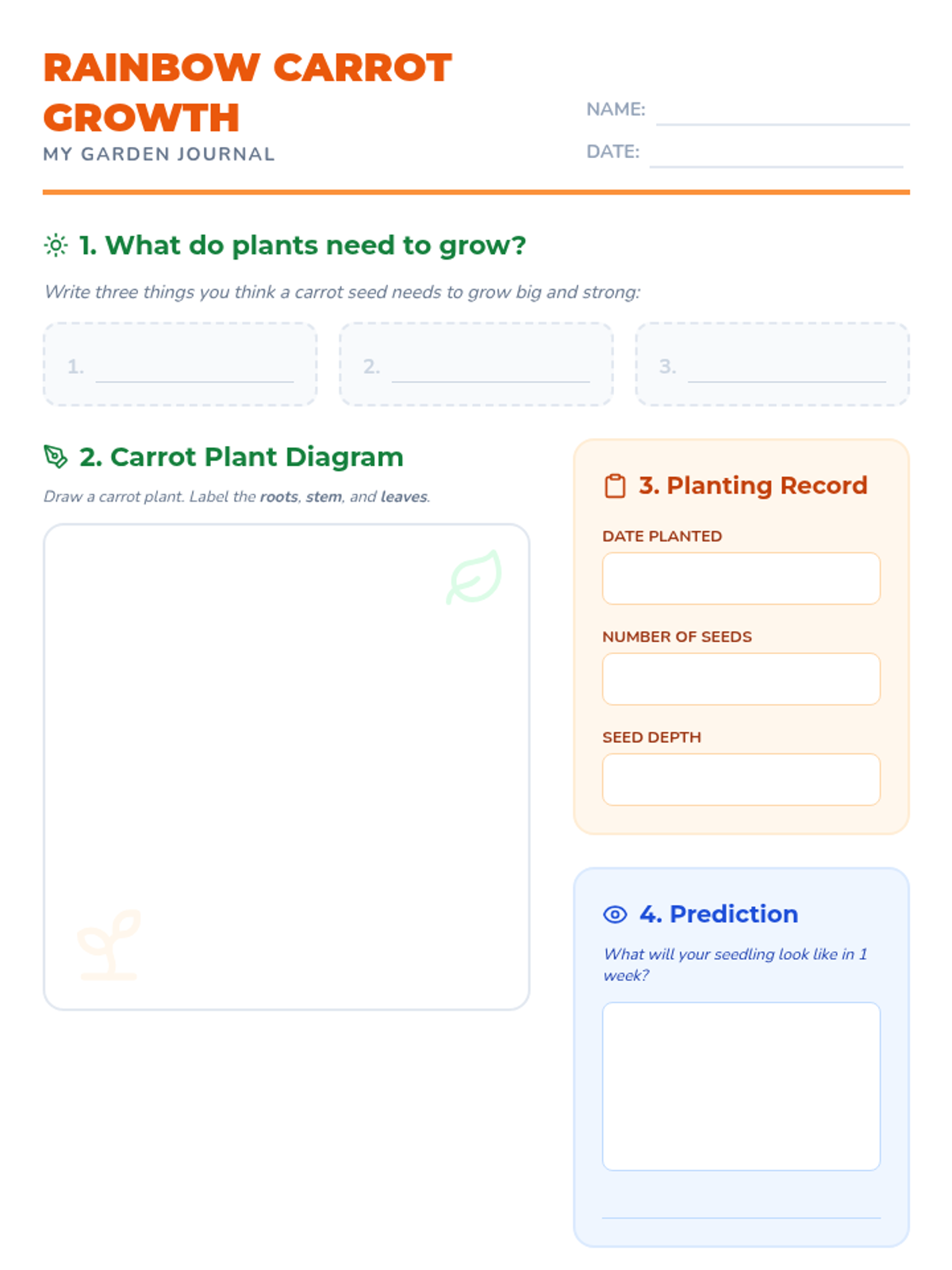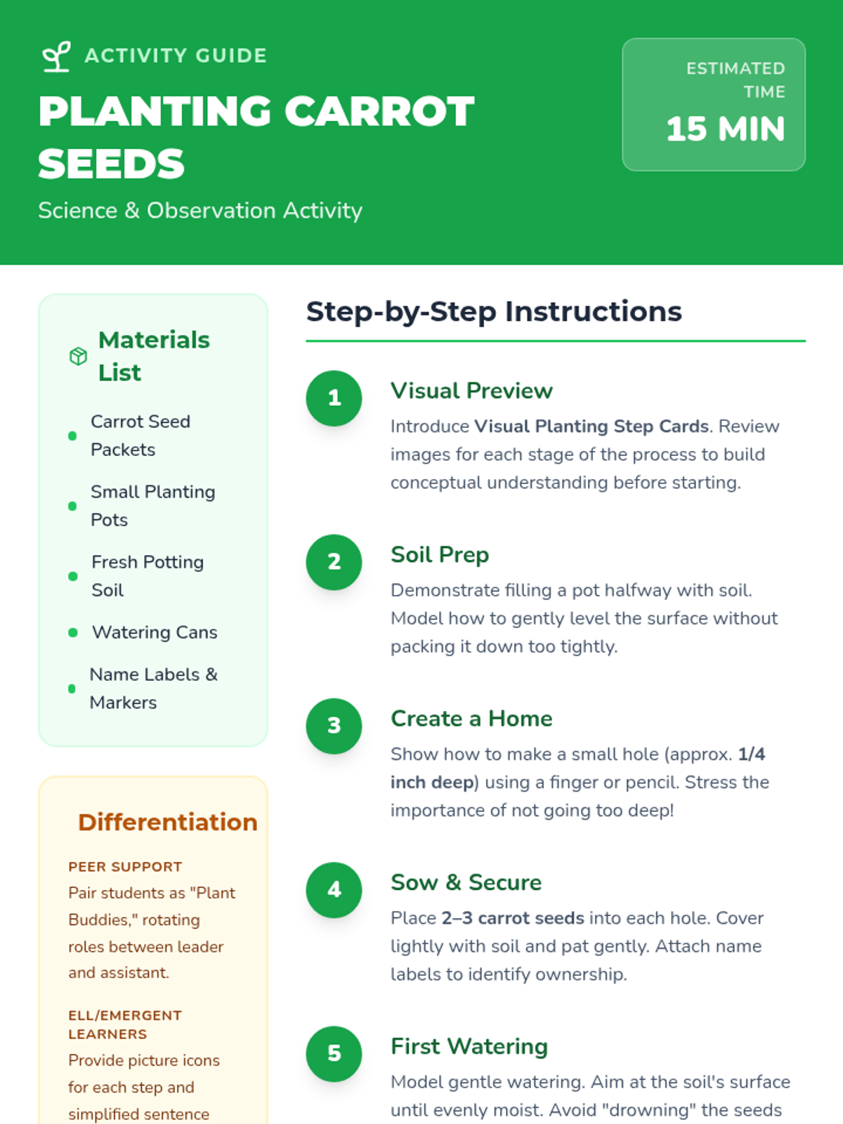 A hands-on K-5 lesson exploring plant biology and nutrition through carrot planting, vitamin matching games, and preparing a vibrant Rainbow Carrot Salad.