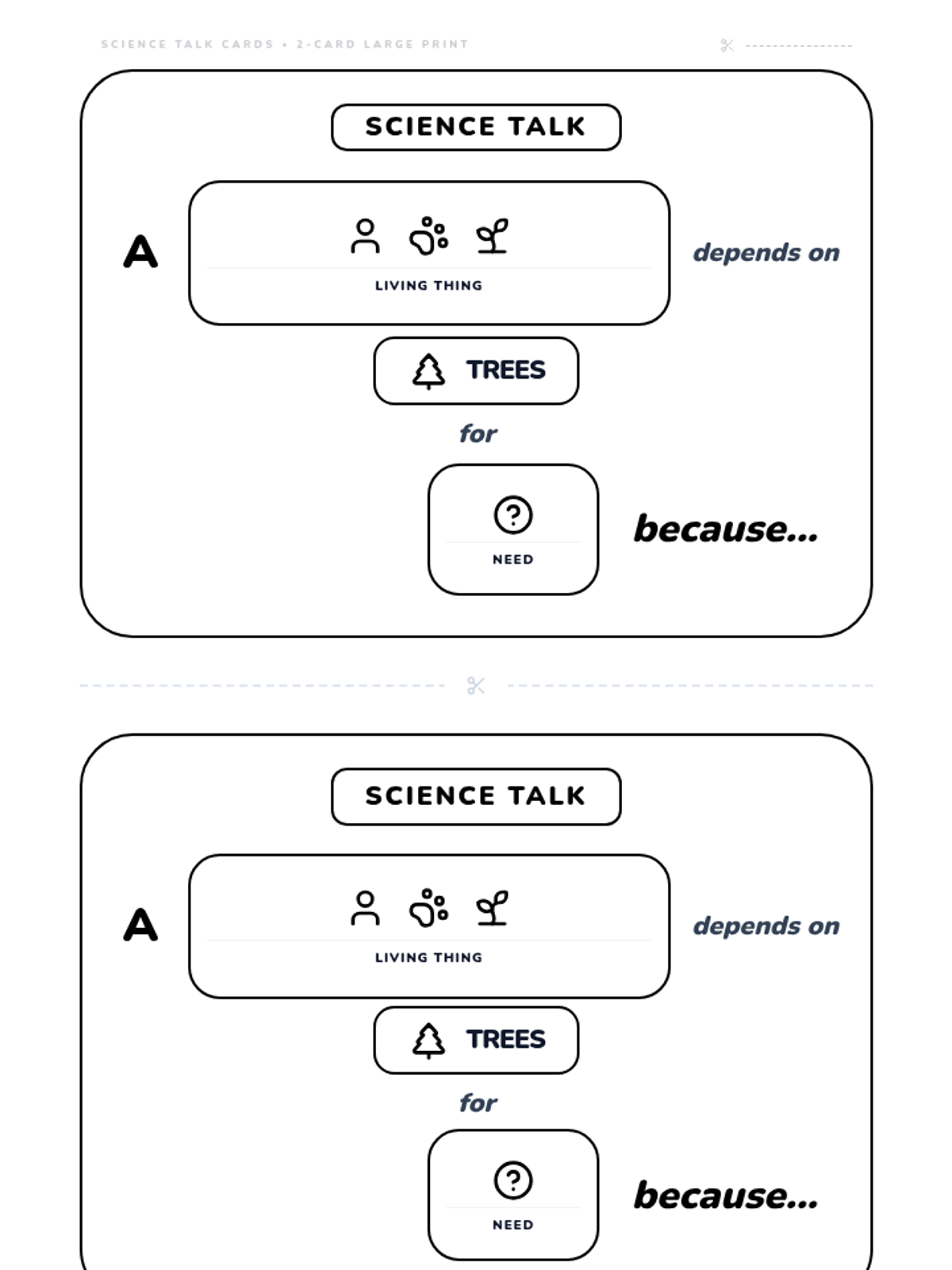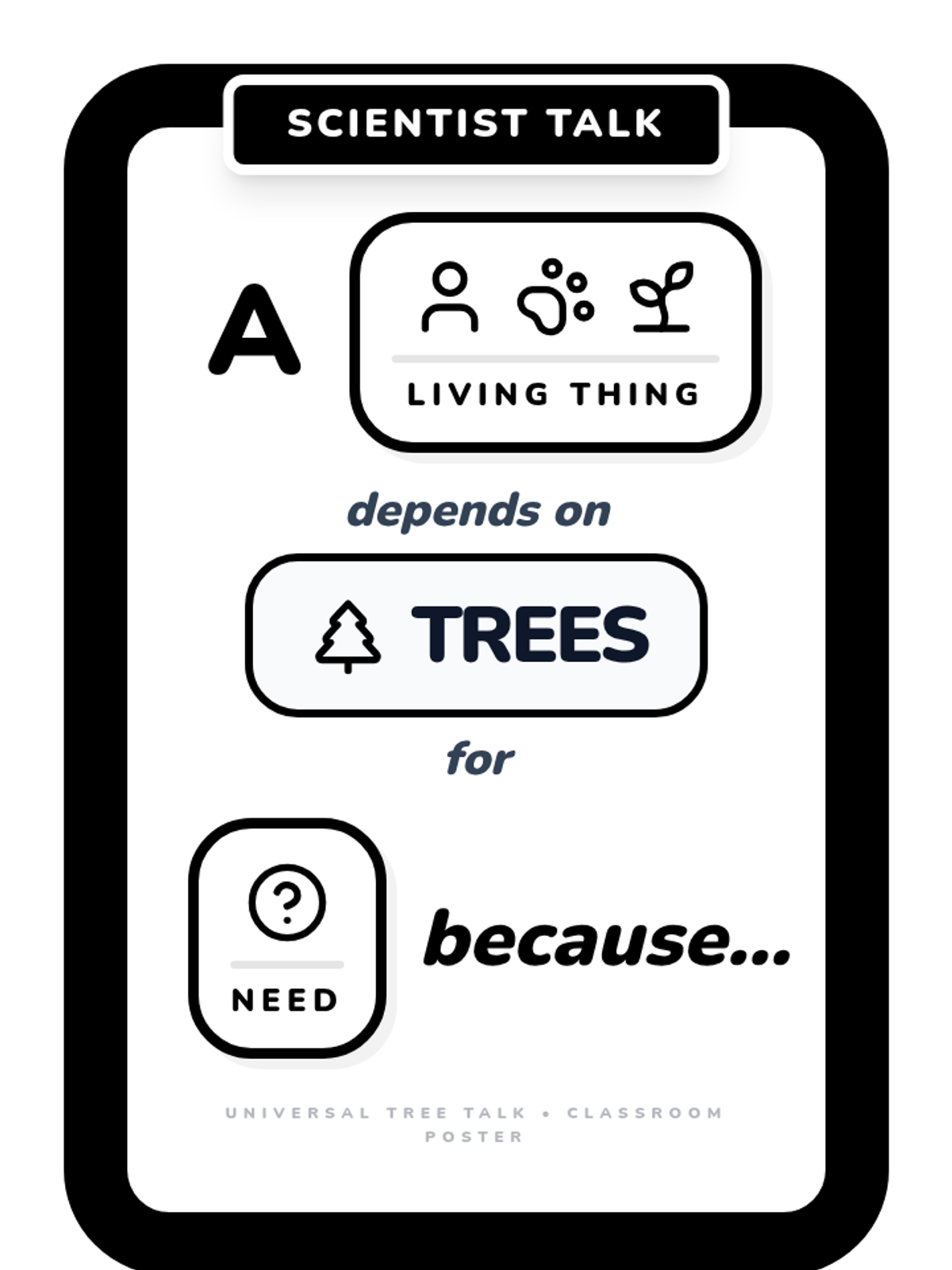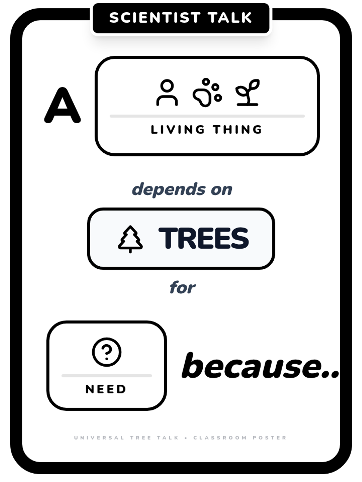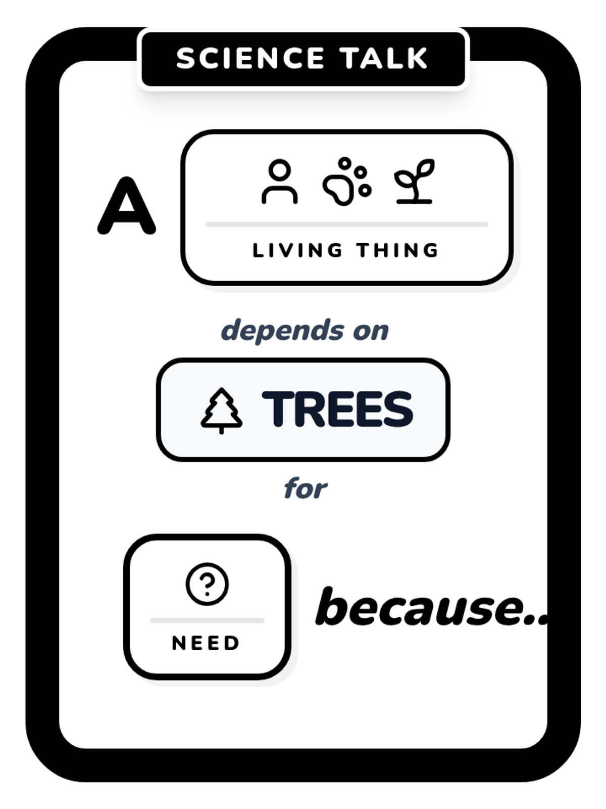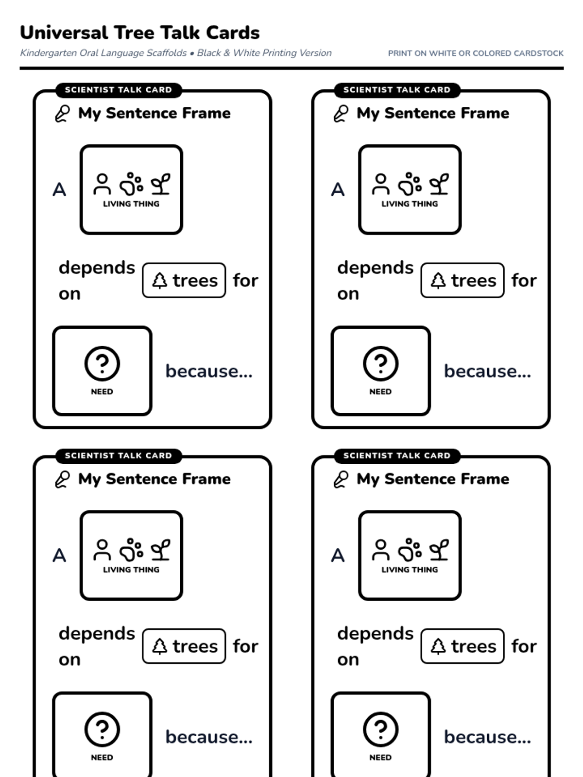 A lesson focused on how living things depend on trees for survival, utilizing visual sentence frames to support Kindergarten oral language development.