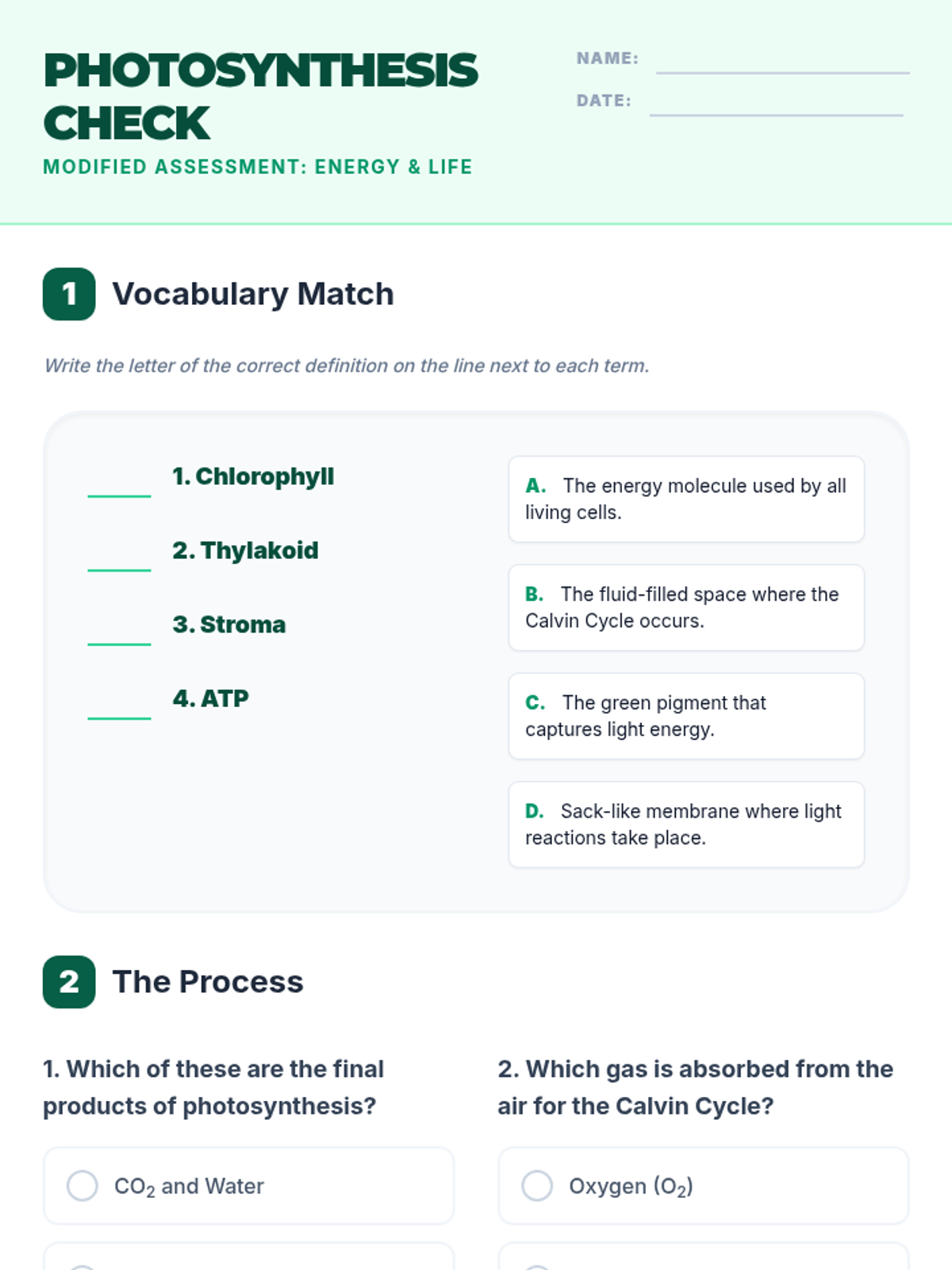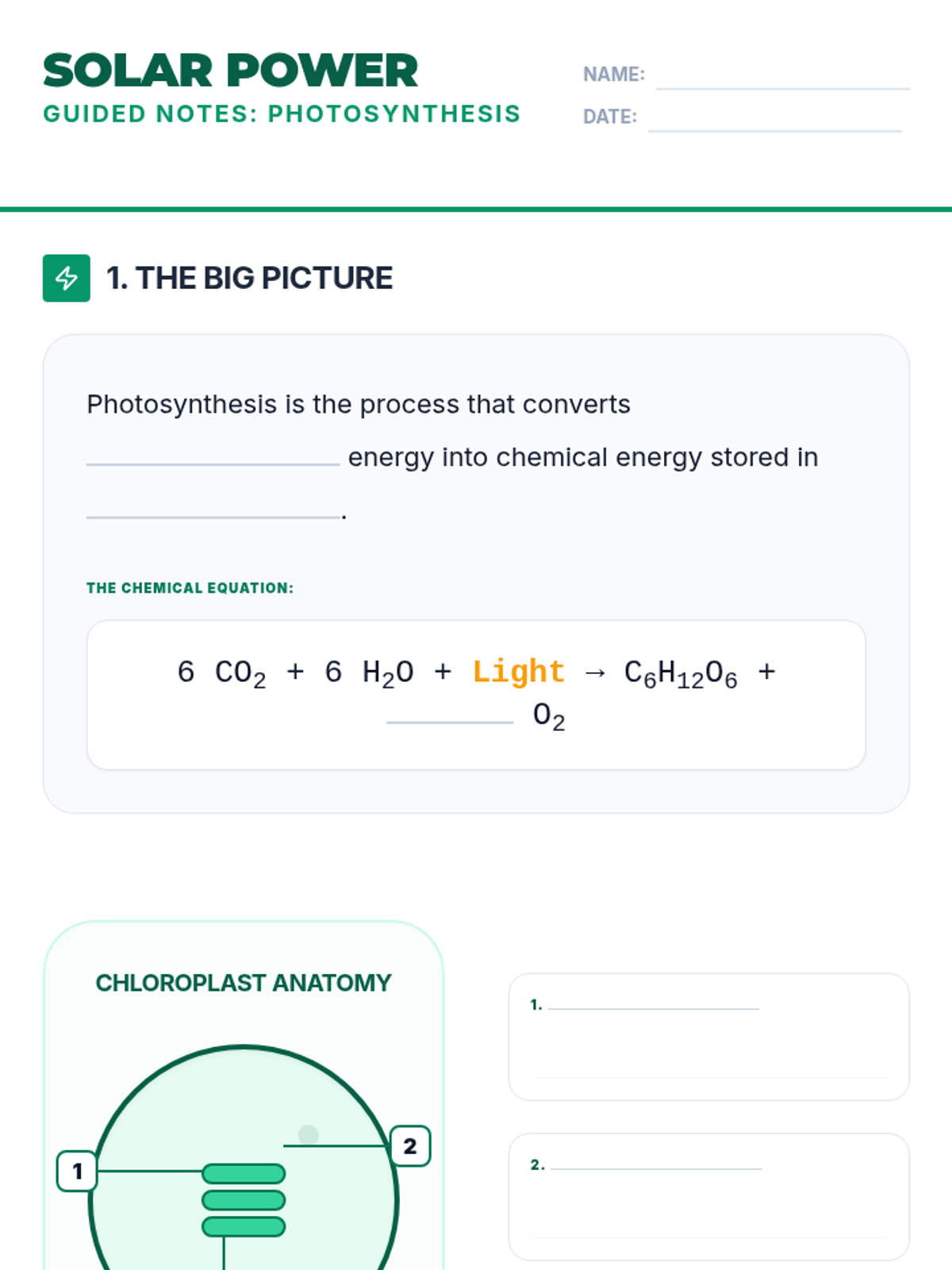 A comprehensive dive into photosynthesis, covering chloroplast anatomy, the light-dependent and light-independent reactions, and the flow of energy through ATP and NADPH.