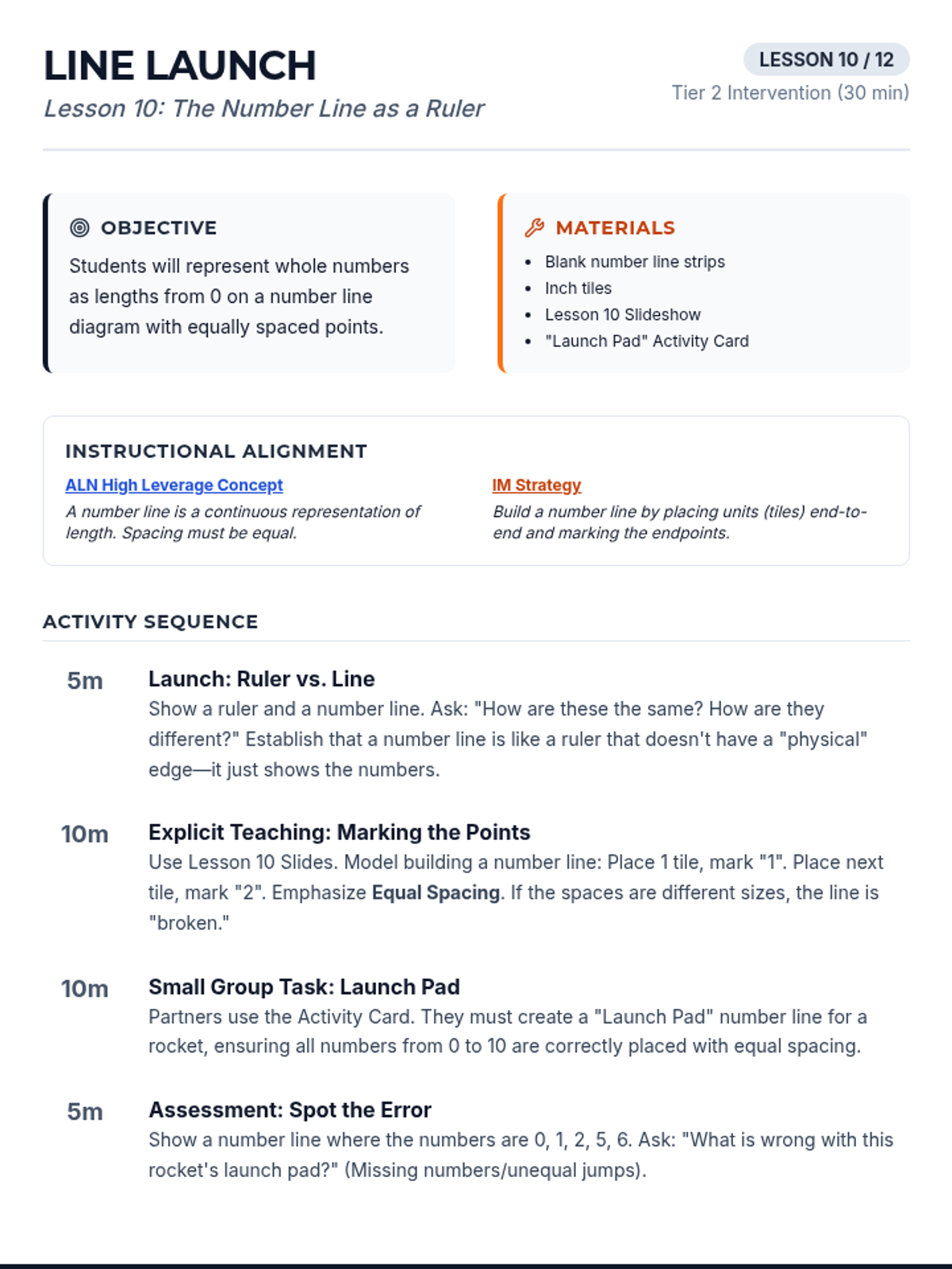 Introduces the number line as a tool for representing whole number lengths starting from zero.