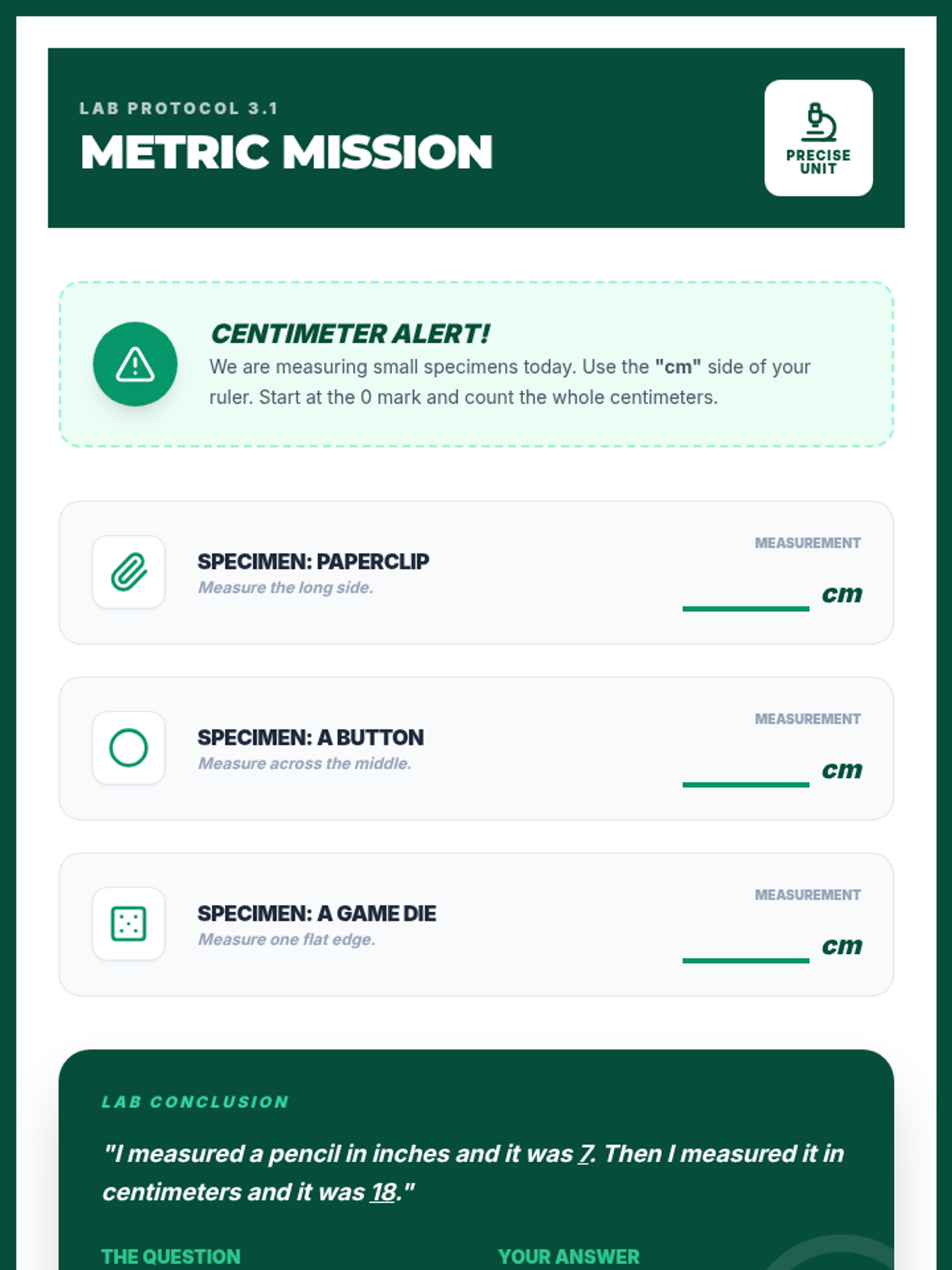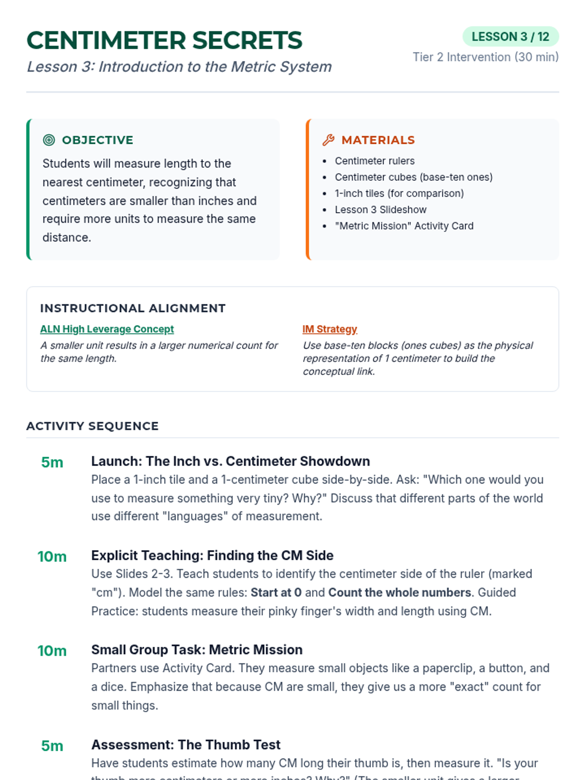 Explores the metric system with centimeters, emphasizing the smaller size of the unit compared to inches and practicing precise tool usage.