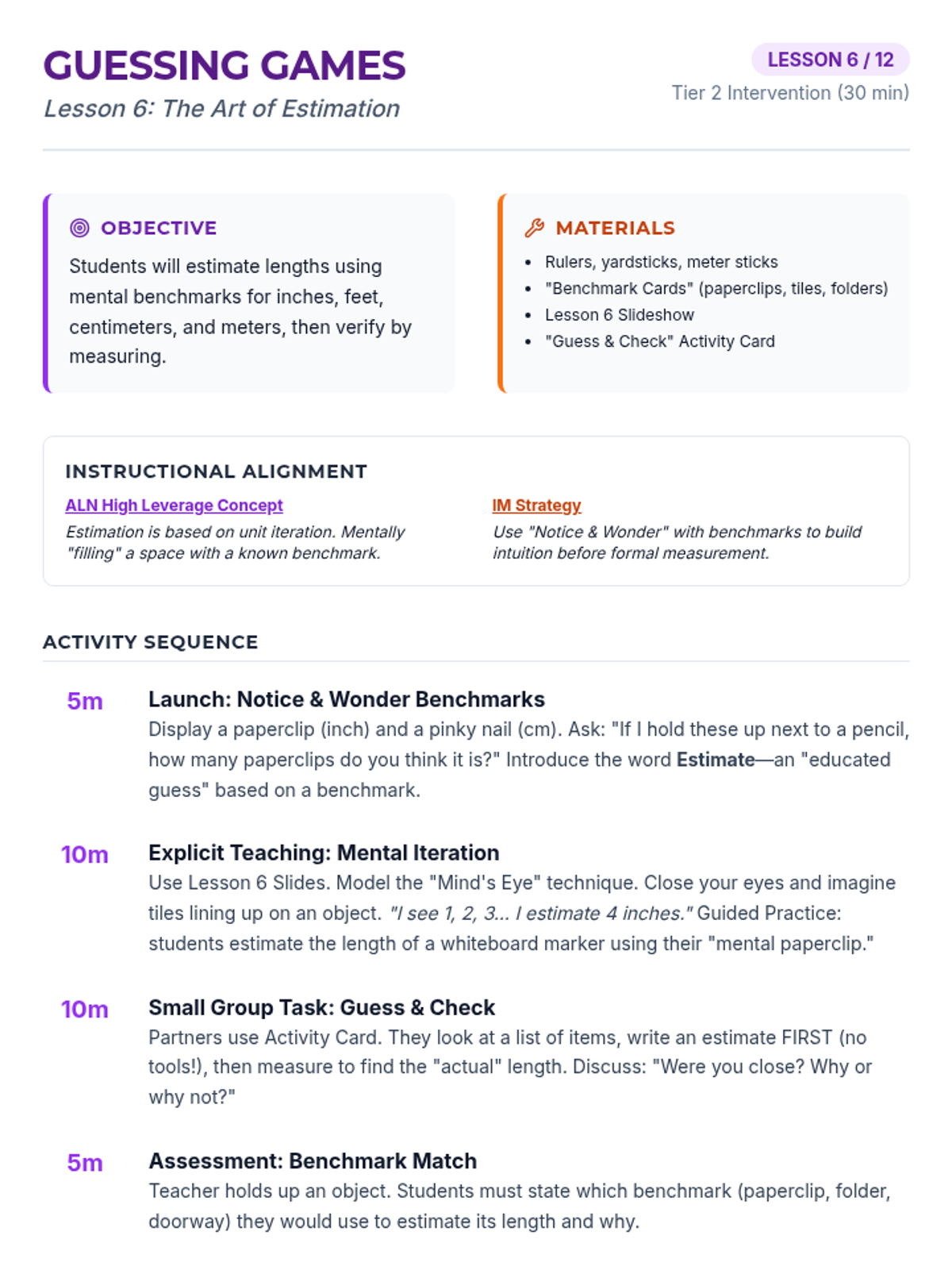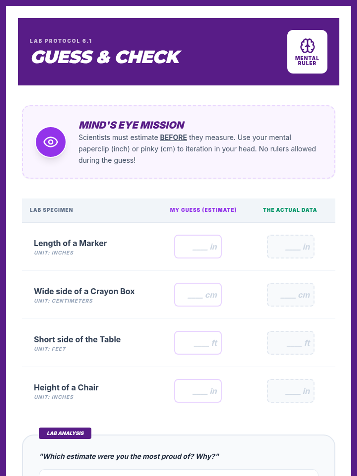 Develops mental benchmarks for standard units to improve estimation accuracy for various lengths.