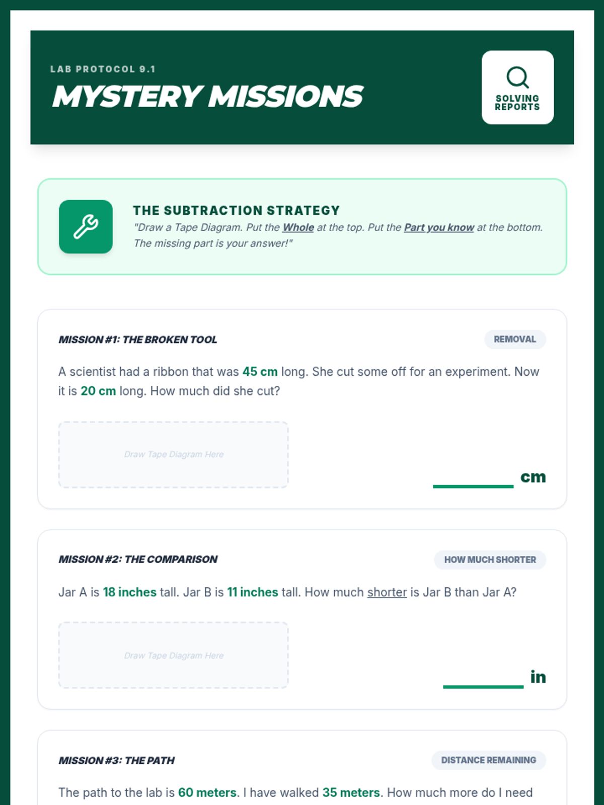 Applies subtraction within 100 to solve 'how much shorter' or 'distance remaining' word problems.