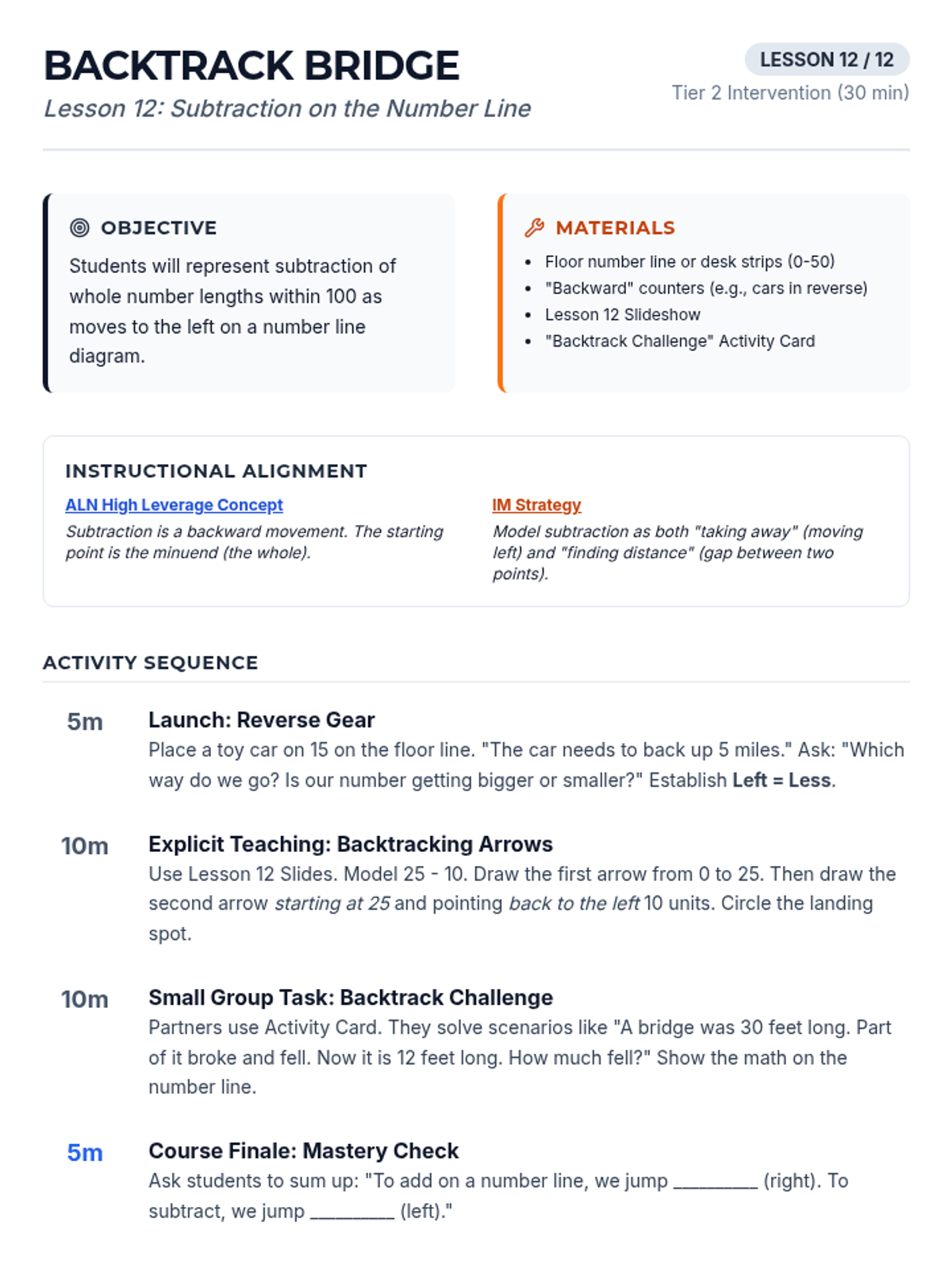 Teaches students to represent subtraction of lengths as moves to the left on a number line diagram.