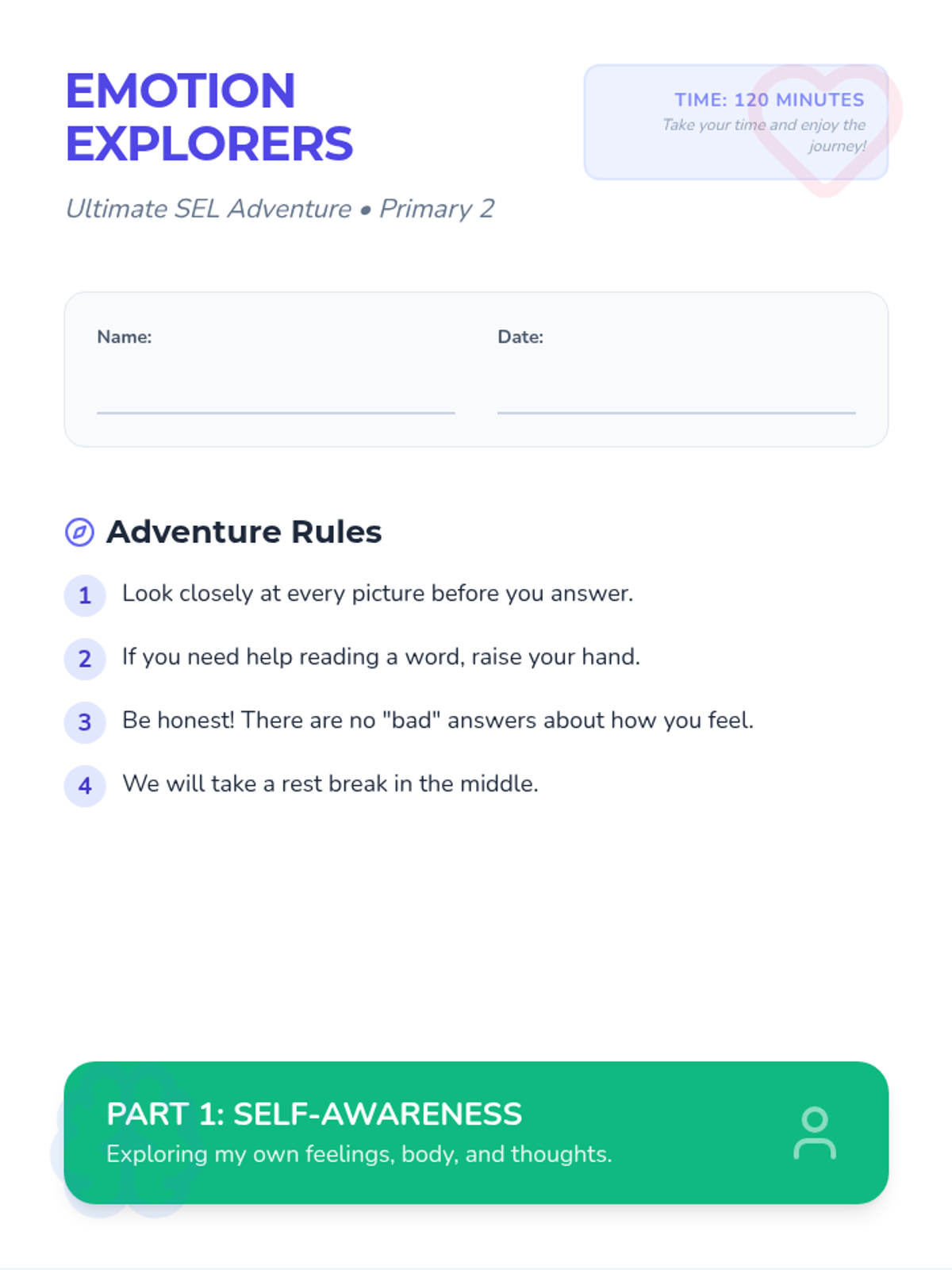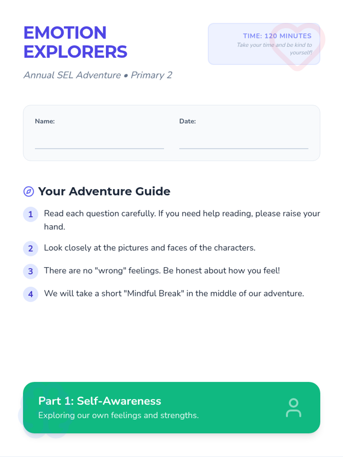 A 30-minute heart-centered lesson focused on self-kindness, empathy for others, and practical problem-solving for unkind moments using a garden-themed narrative.