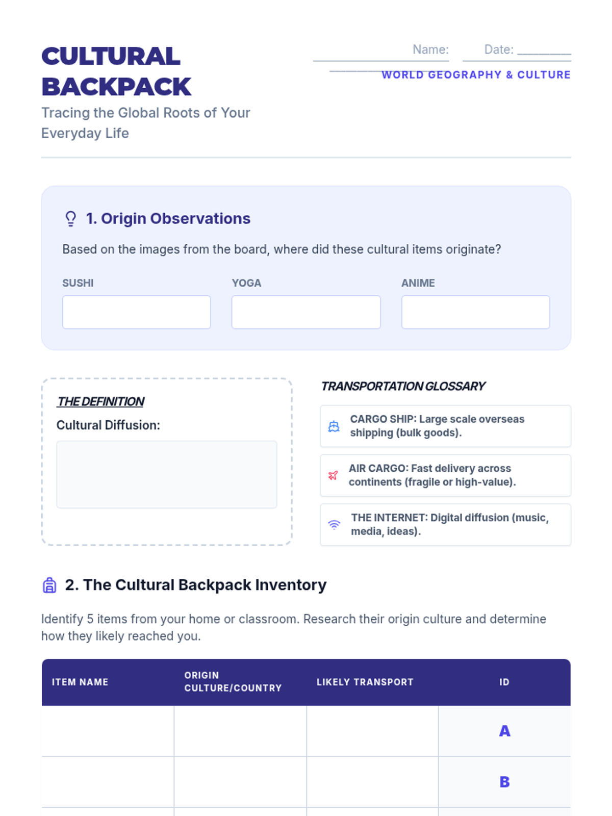 Explore the concept of cultural diffusion through the lens of transportation technology, tracing the global journey of everyday items from origin to destination.