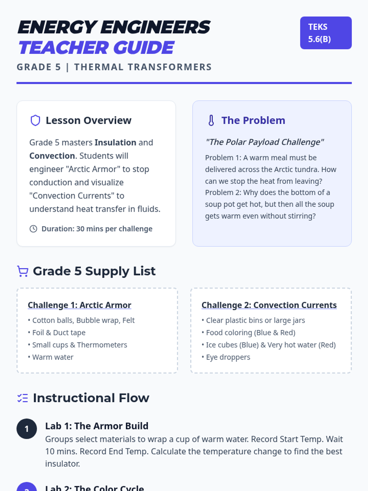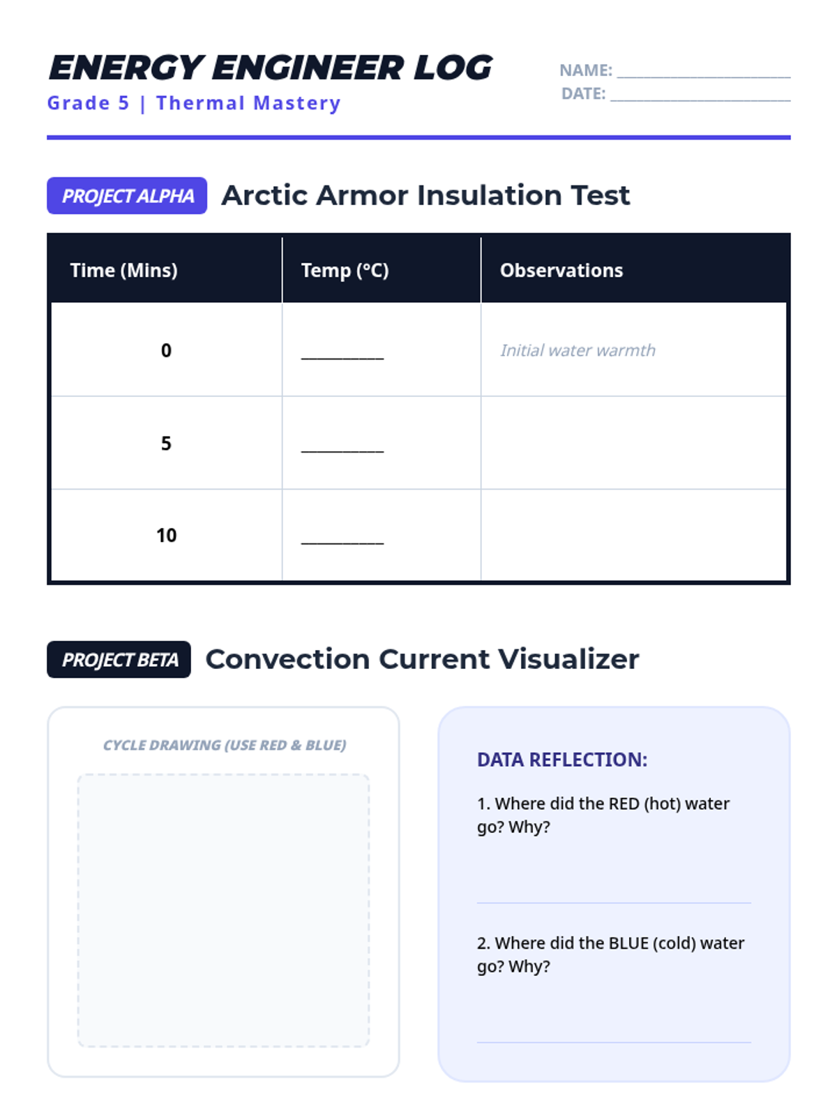 Masters Insulation and Convection. Students engineer 'Arctic Armor' to stop heat transfer and visualize 'Convection Currents' in liquids to understand energy flow.