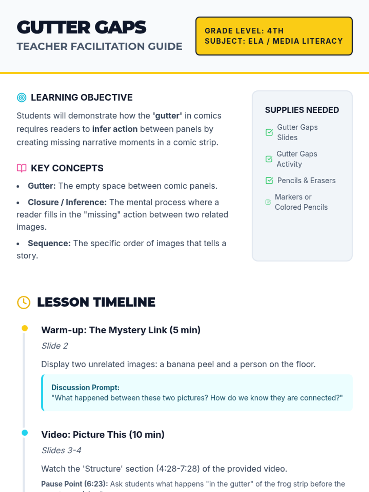 A high-energy 4th-grade lesson where students learn to distinguish between dialogue and stage directions through physical performance and script analysis. Includes a theatrical-themed slide deck, performance scripts, and a kid-friendly assessment rubric.