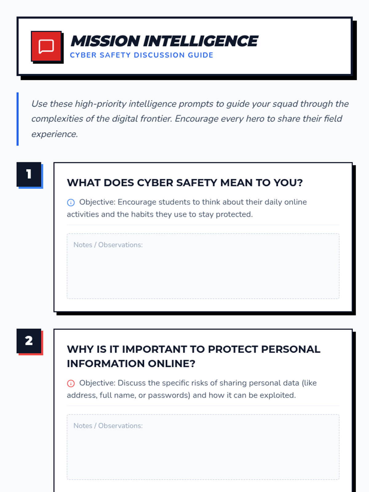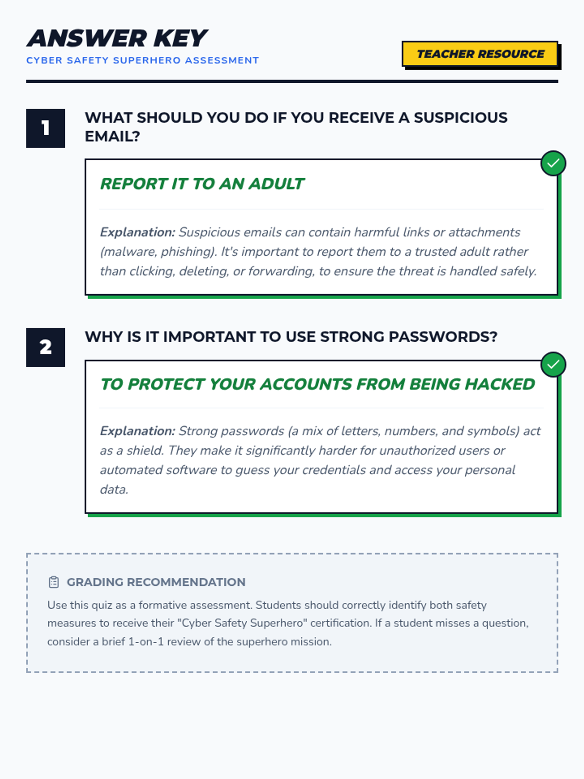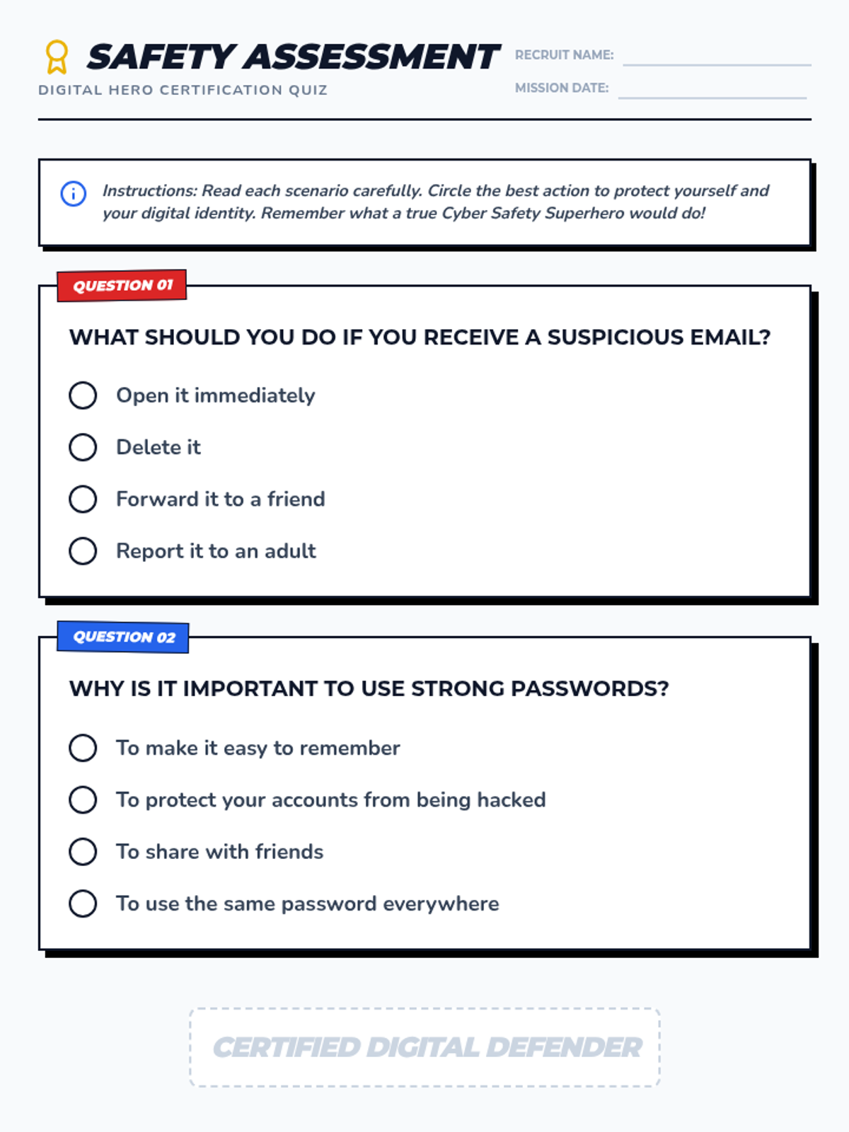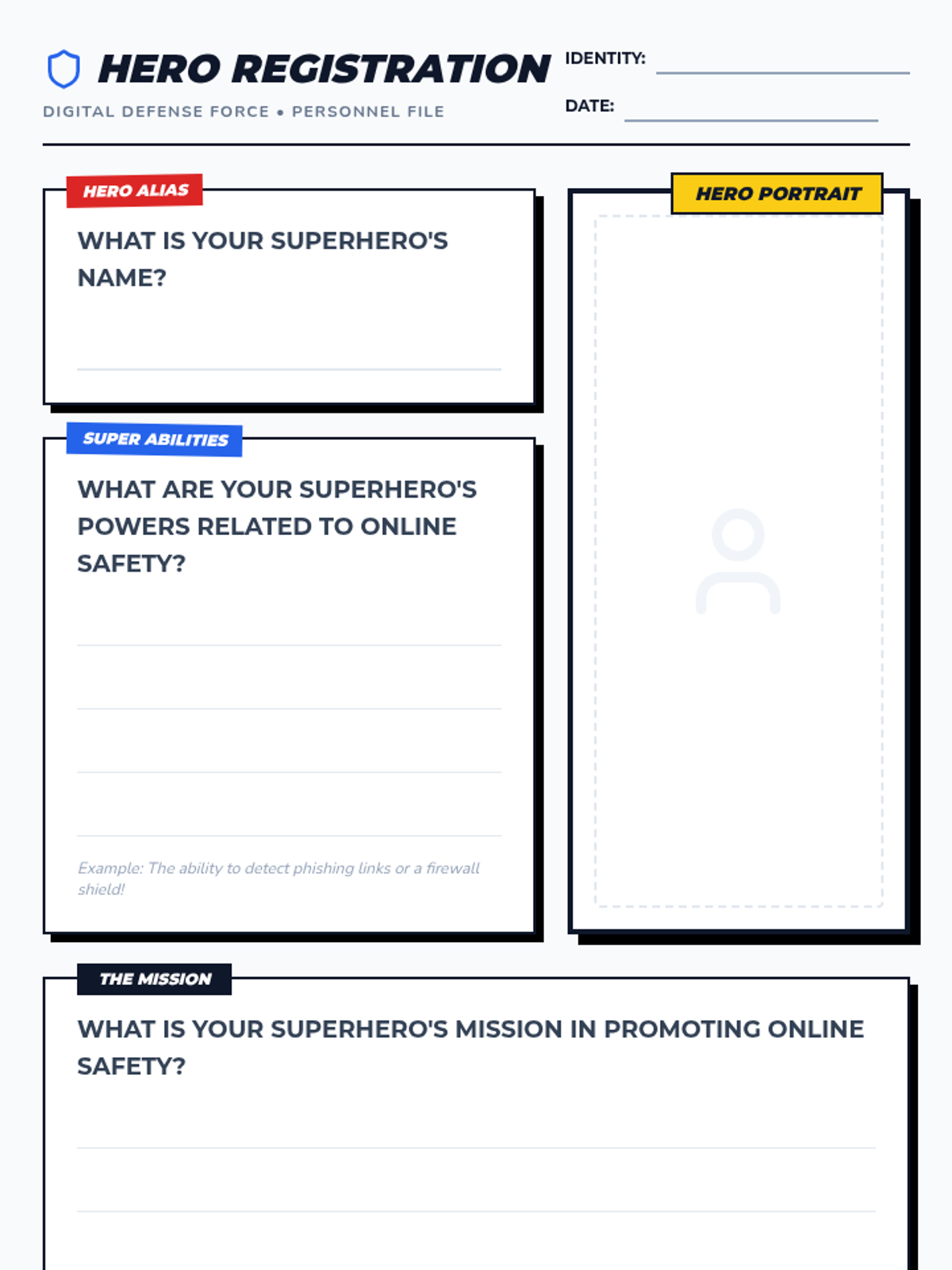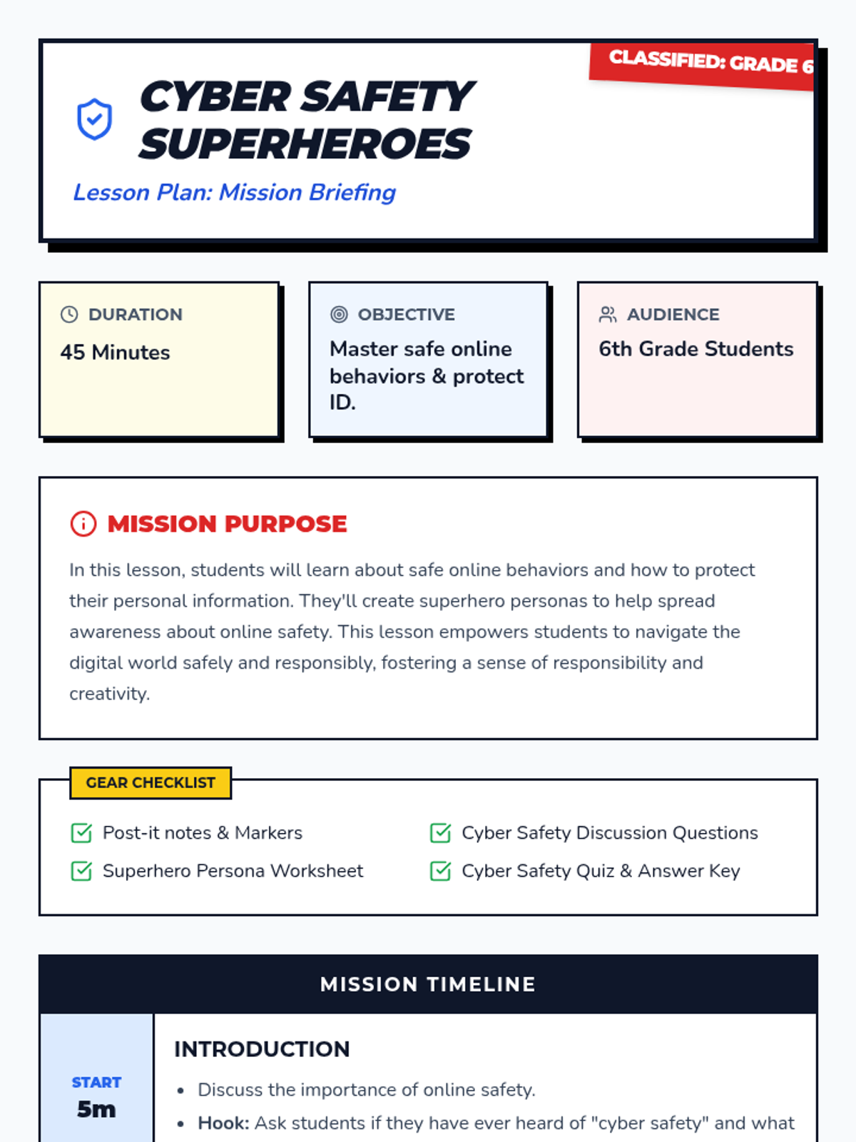 A 45-minute lesson for 6th-grade students on online safety, where they learn to protect personal information and create superhero personas to advocate for digital responsibility.