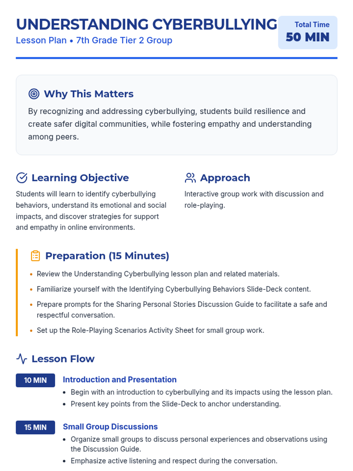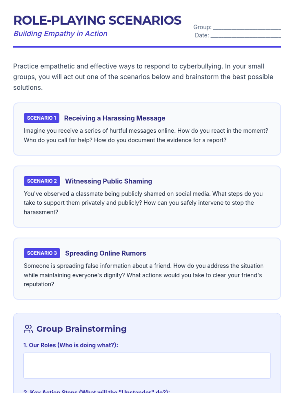 In this lesson, small groups address the issue of cyberbullying, learning how to recognize it and find support. This lesson fosters empathy and equips students with tools to deal with online harassment.