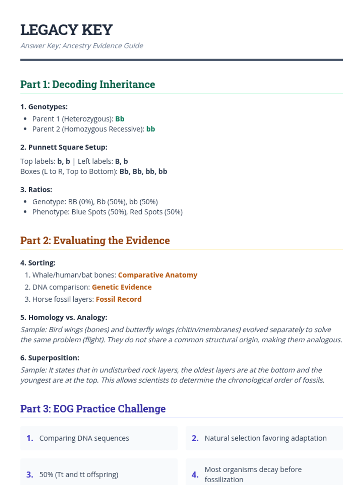 Students evaluate scientific evidence from fossils, anatomy, and genetics to support claims about evolution and heredity.