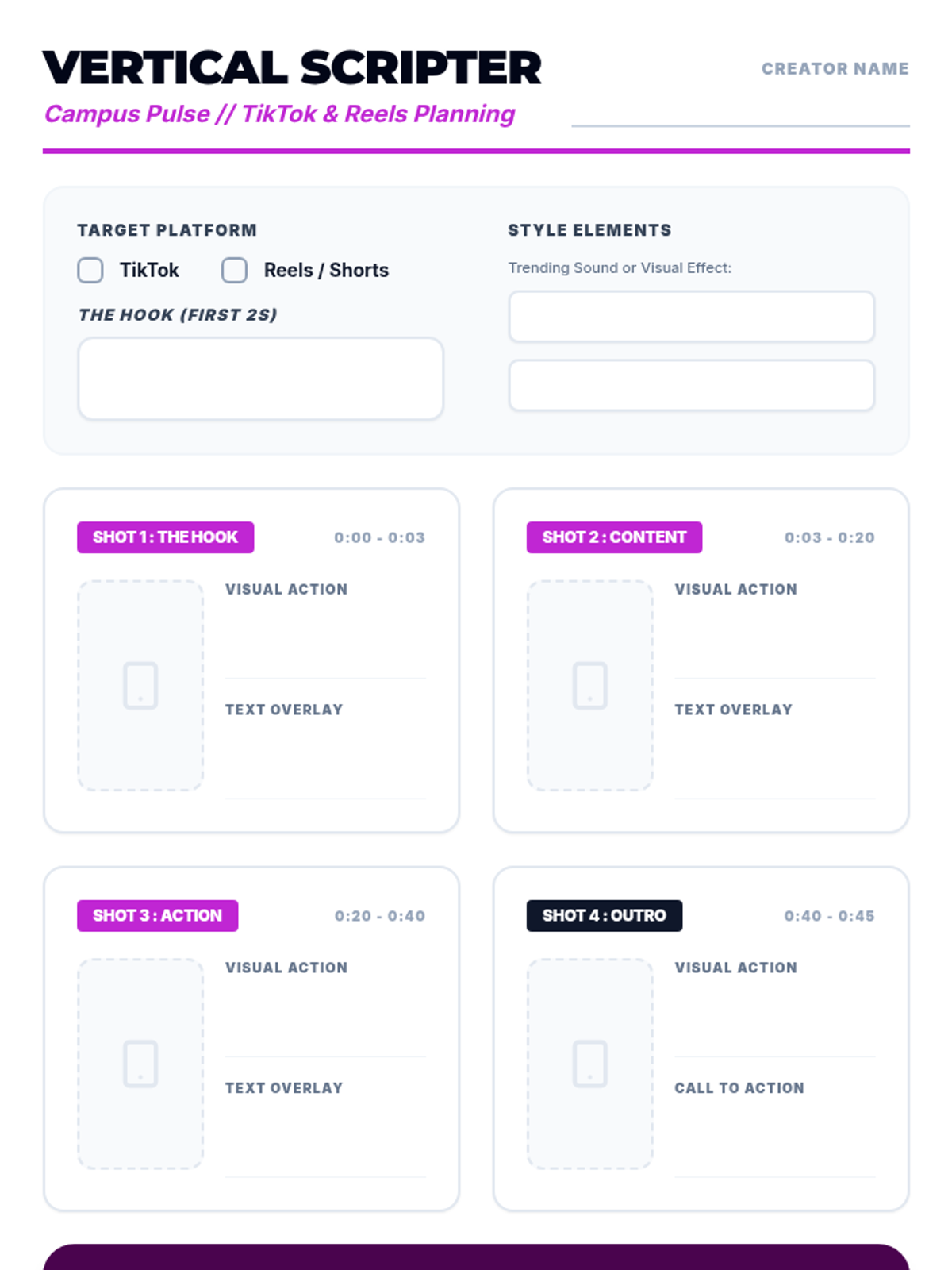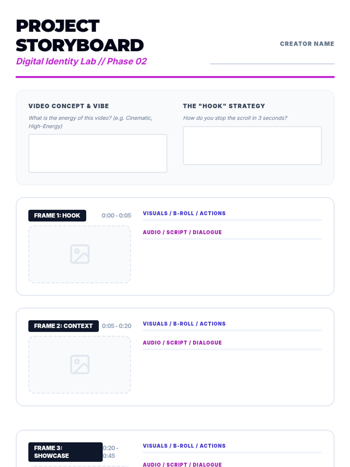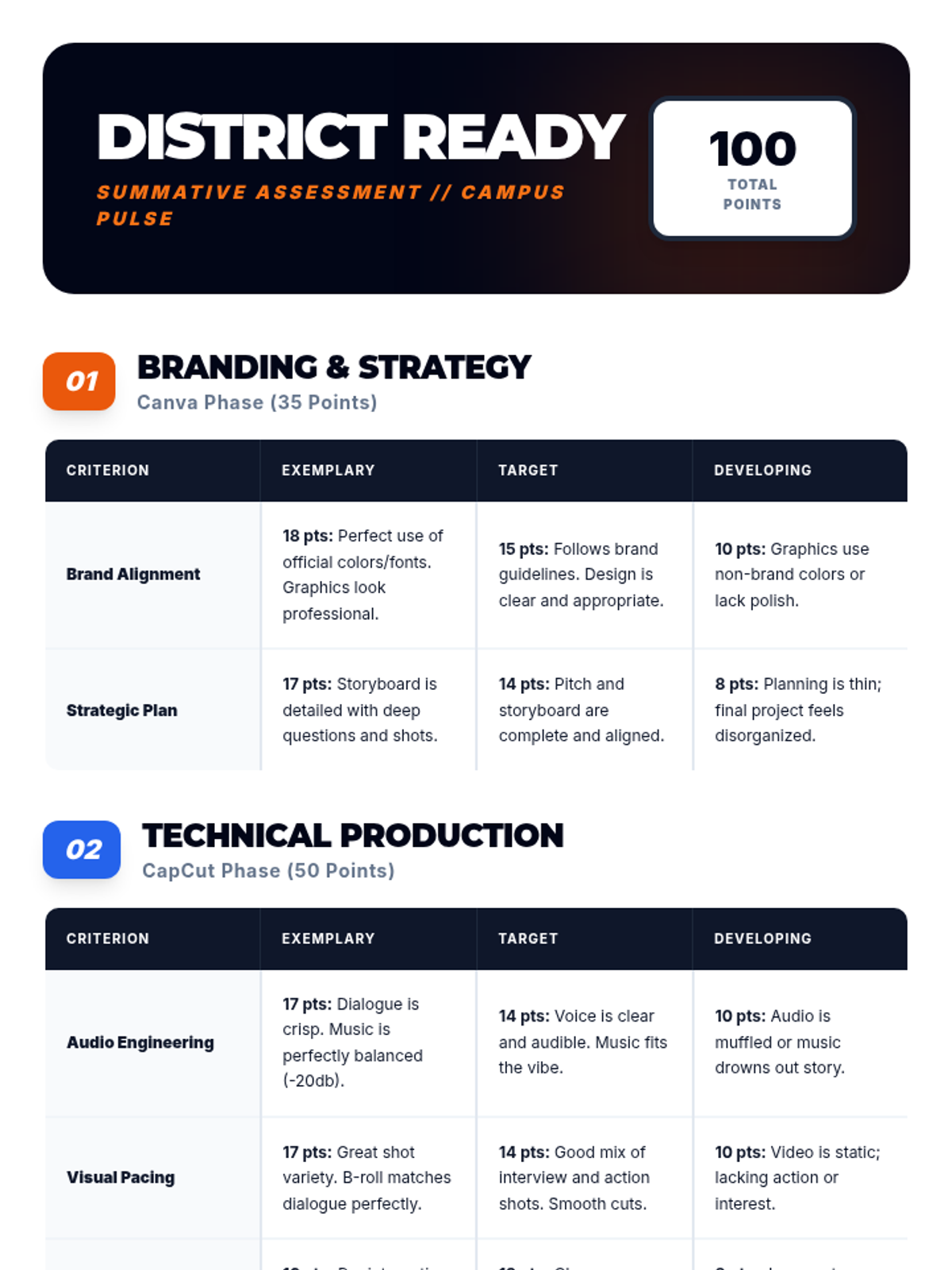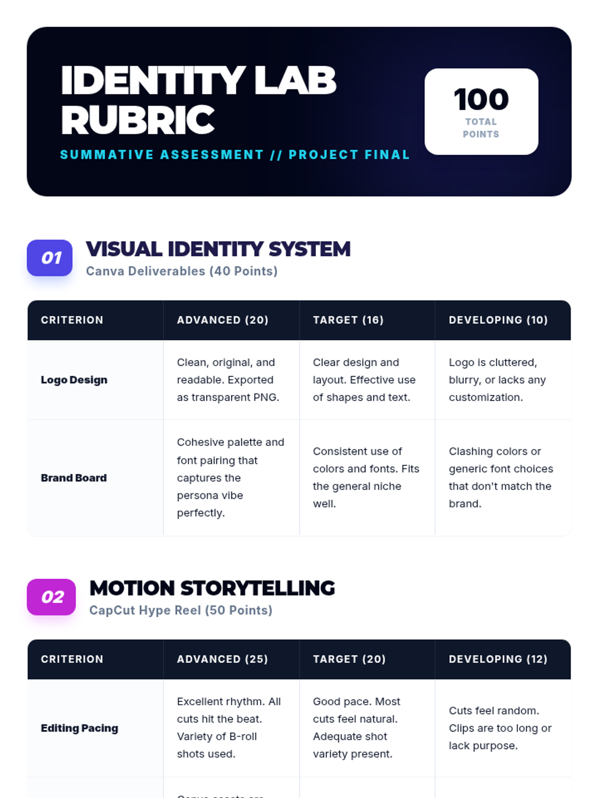Students transition their brand into motion by creating a 60-second short-form video in CapCut, applying editing techniques like transitions, overlays, and sound design.