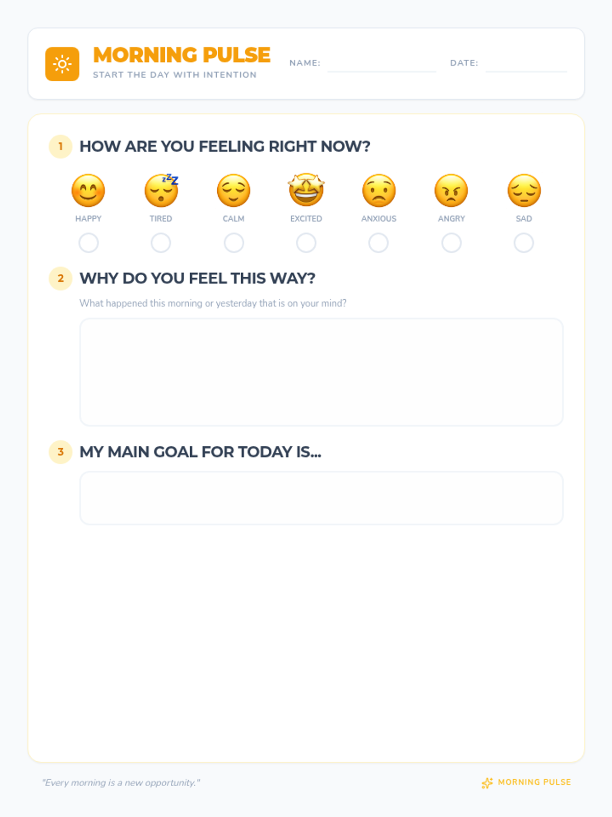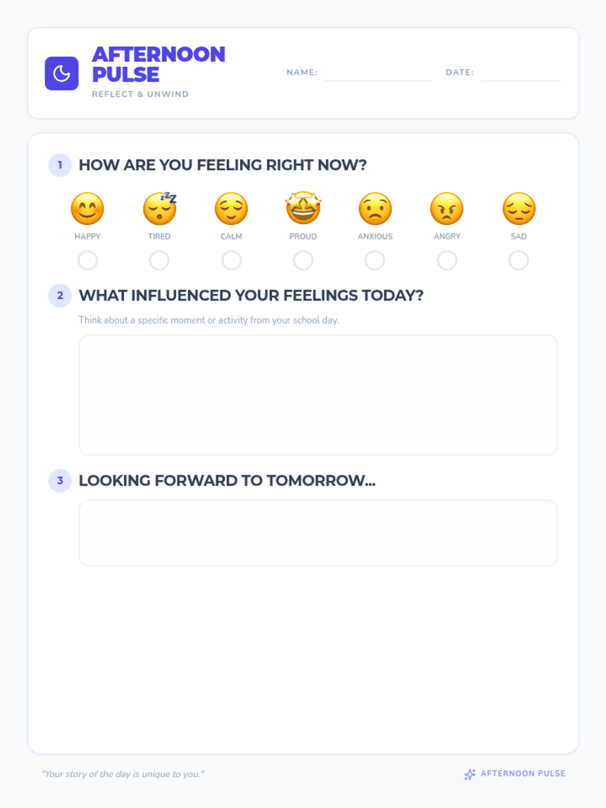 A daily routine resource to help students build emotional intelligence by identifying feelings and their triggers at the start and end of the school day.