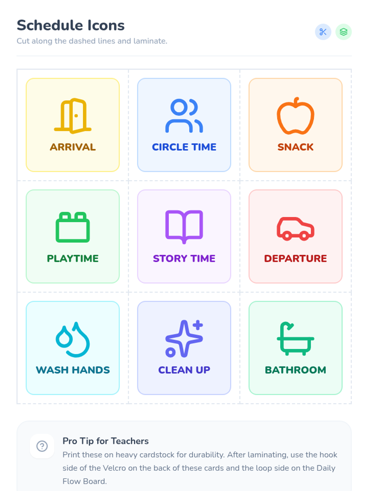 A visual schedule set designed for preschoolers to track their daily routines and build independence.