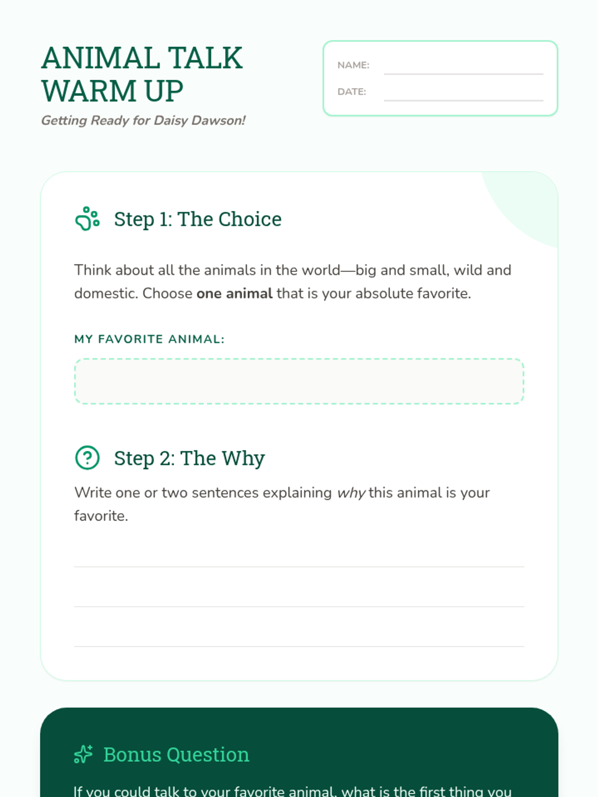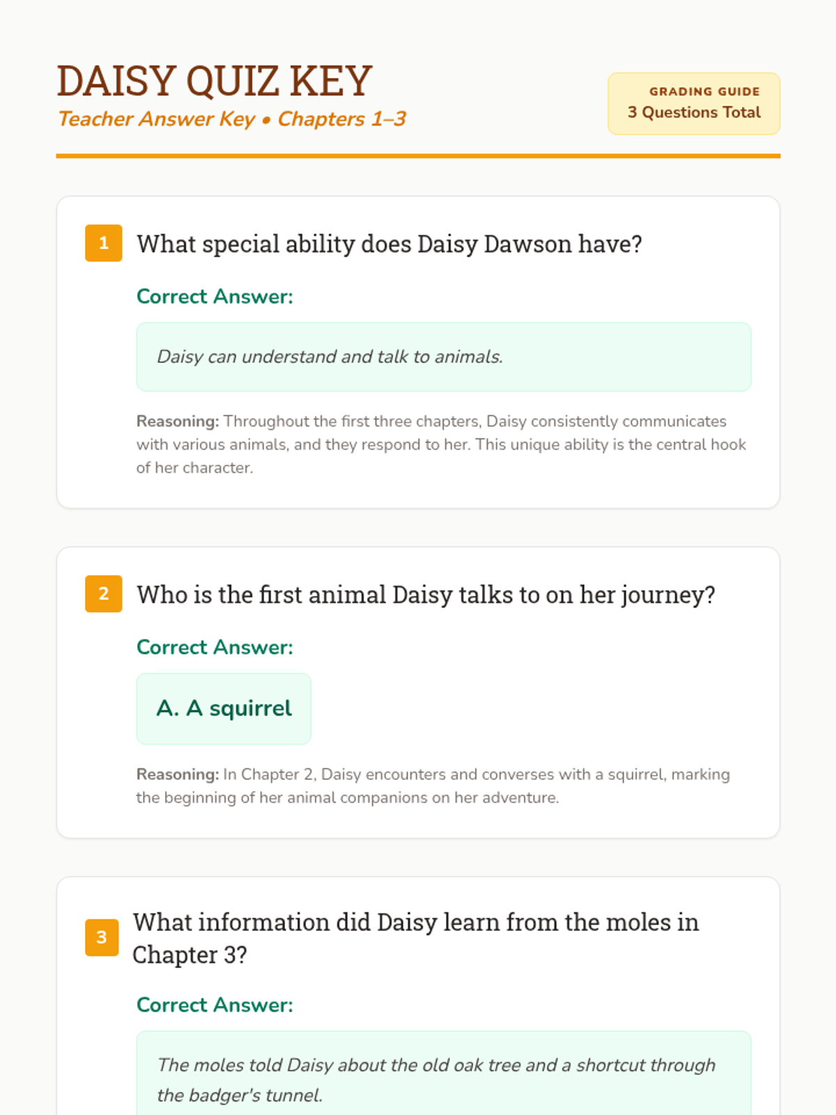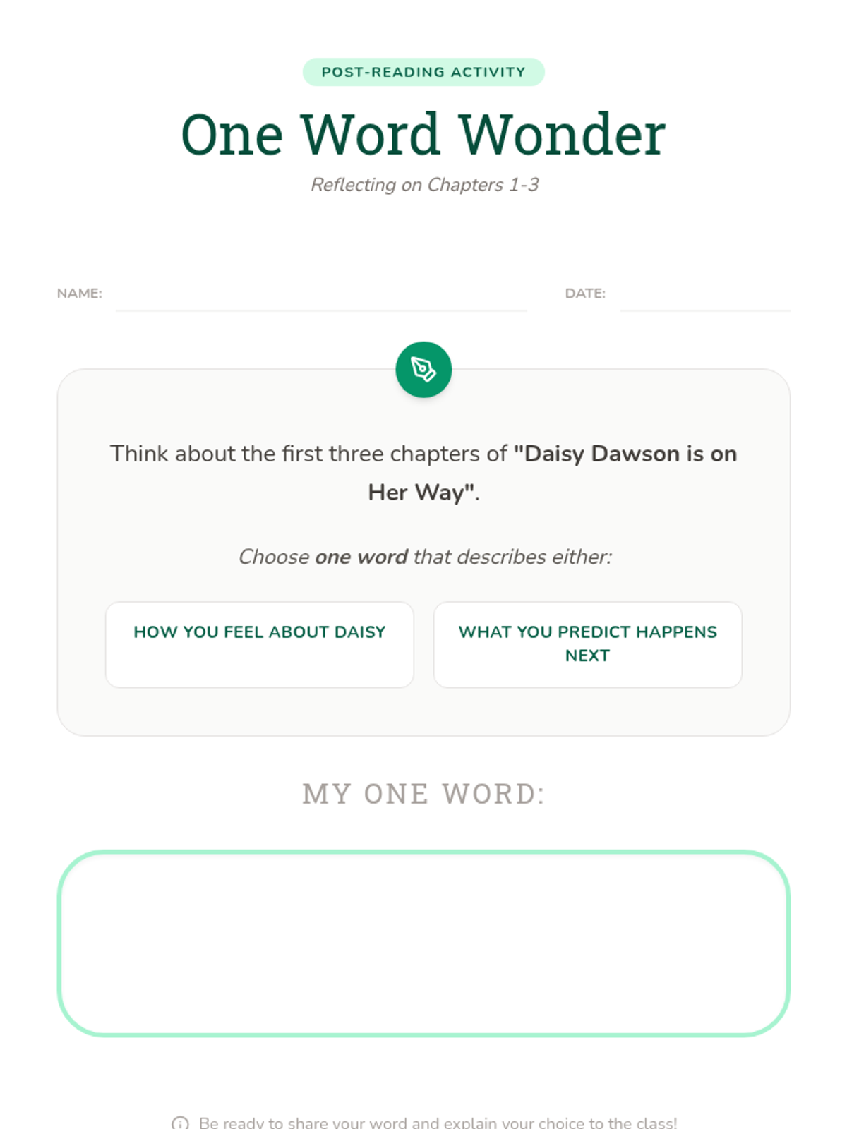 An introductory lesson to 'Daisy Dawson is on Her Way', focusing on Chapters 1-3. Students explore Daisy's unique gift of talking to animals through read-alouds, interactive discussion, and a comprehension check.