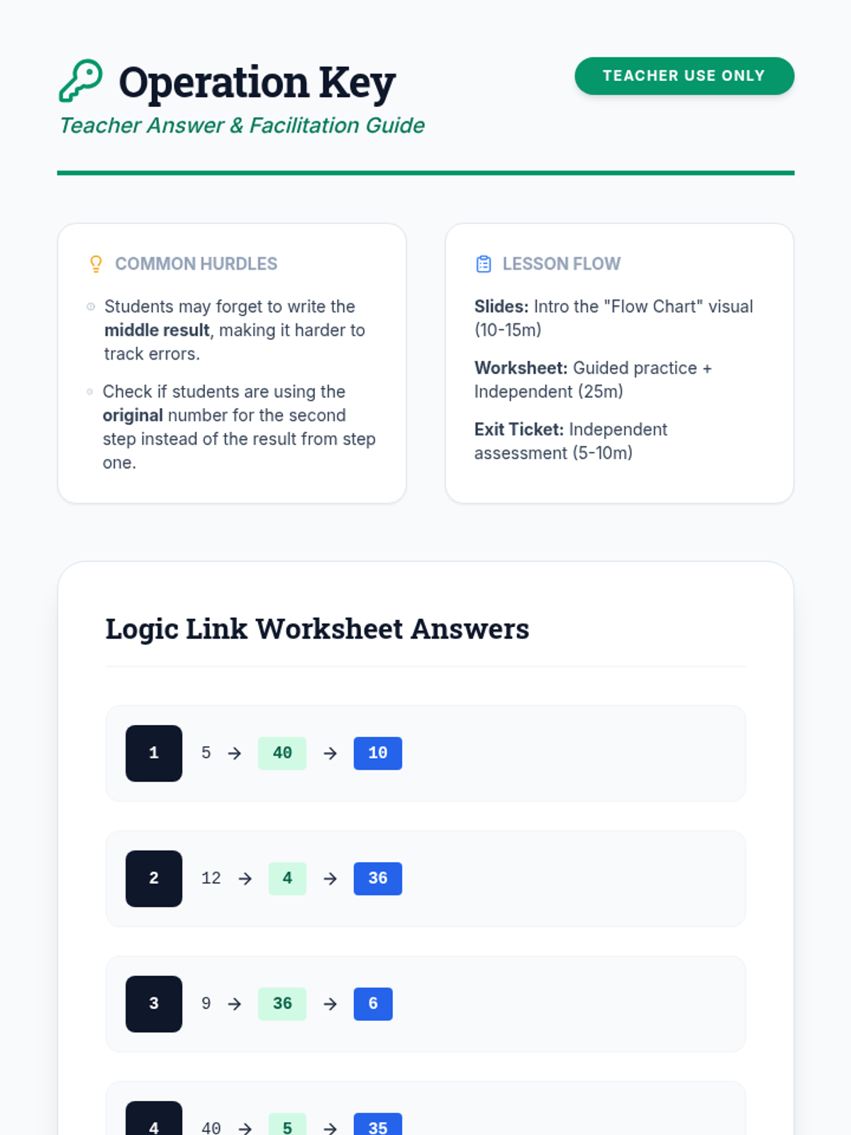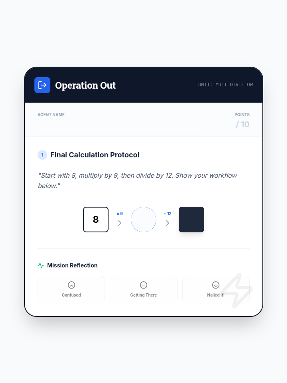 A lesson focused on solving multi-step problems using multiplication and division within 100, utilizing flow charts to visualize the sequence of operations.