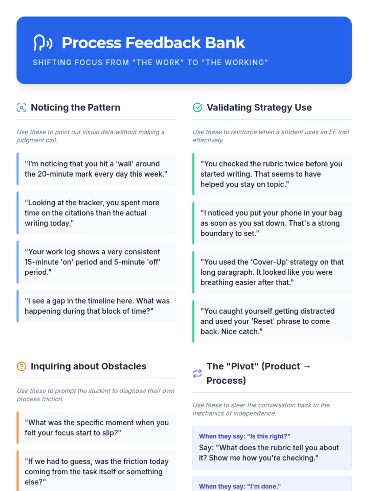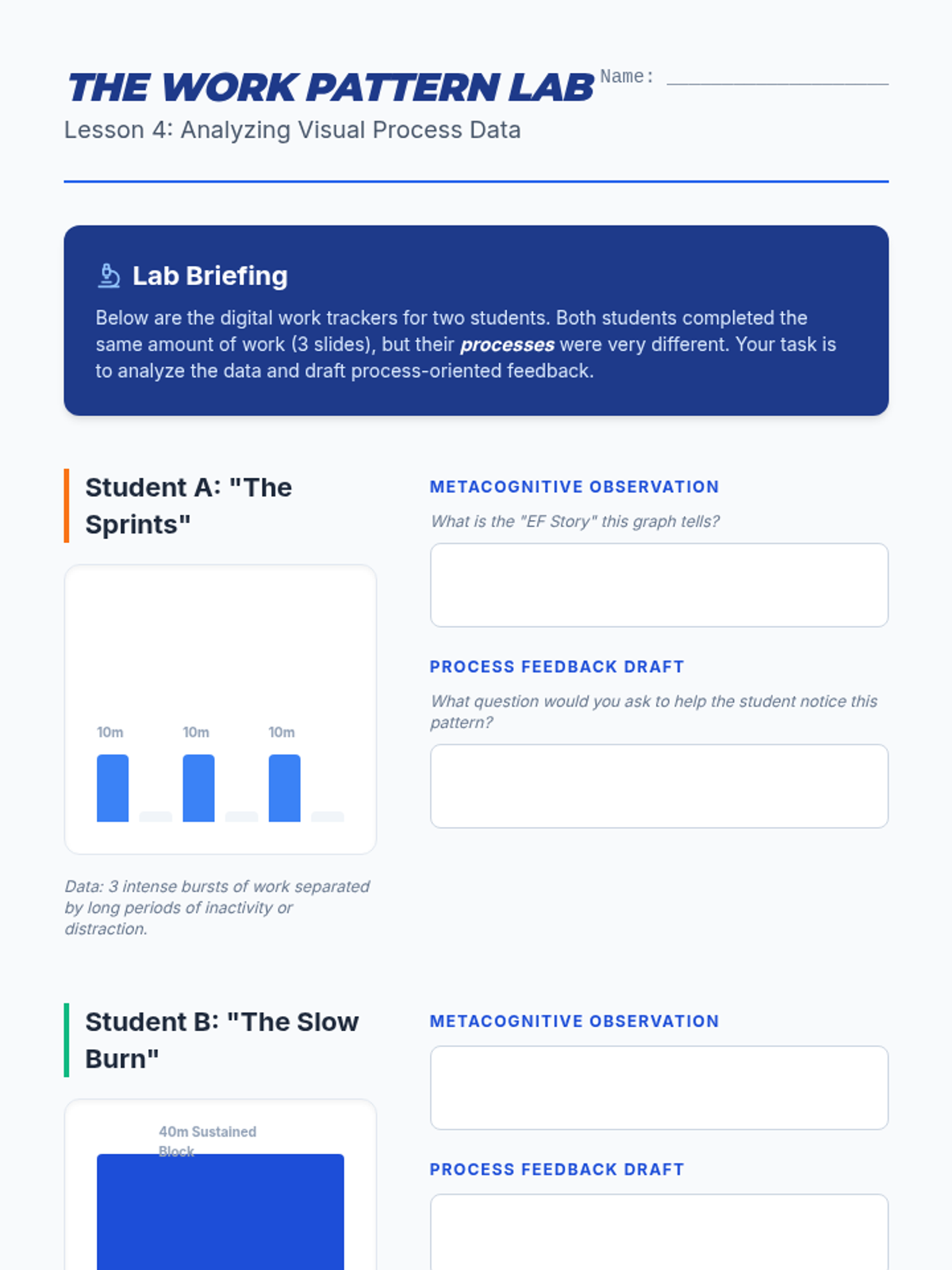 Teaches educators how to use visual data and process-oriented feedback to help students recognize their own work patterns and self-regulate.