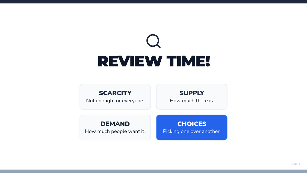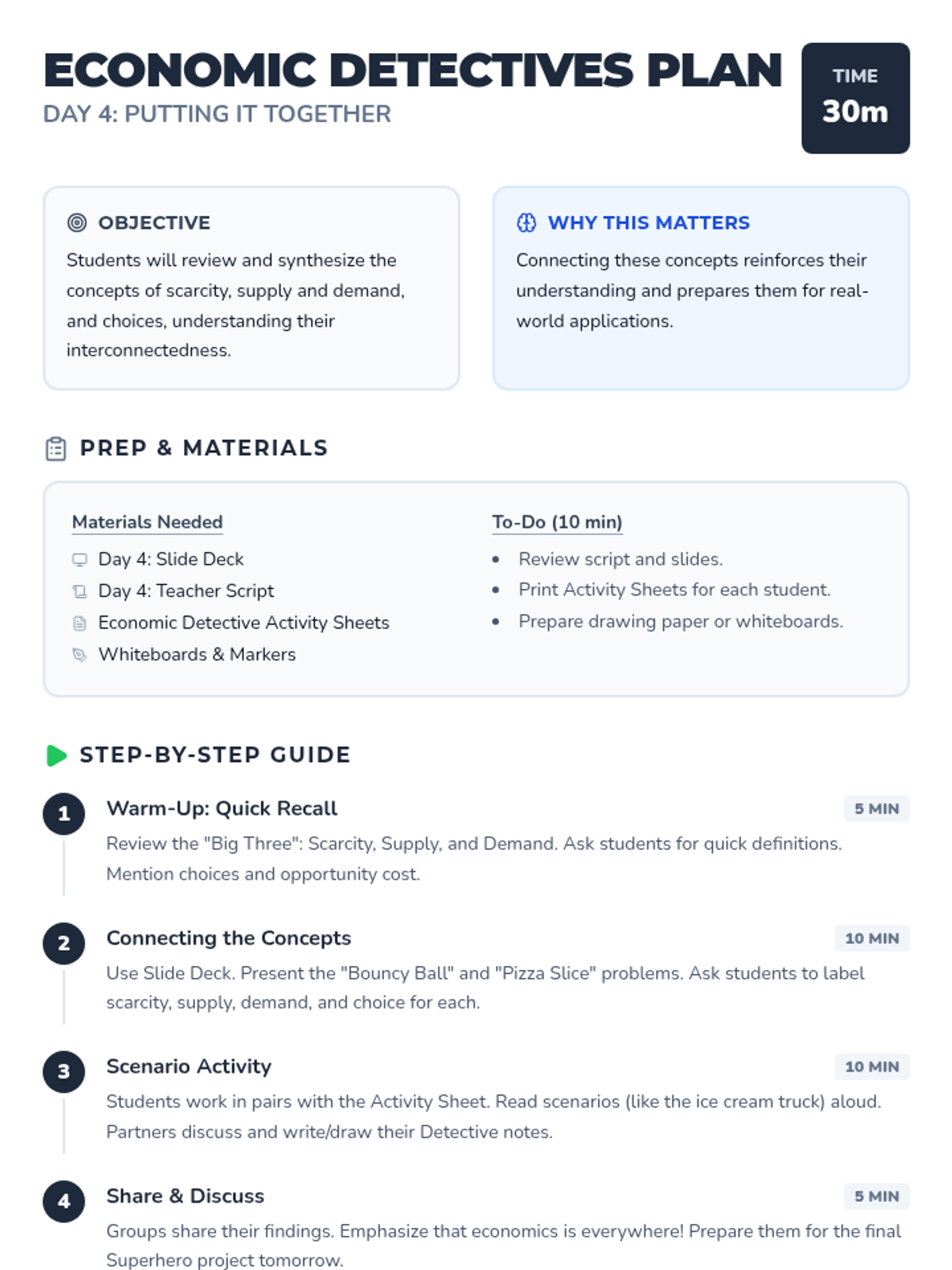 Synthesizing economic concepts through real-world scenario analysis in pairs.