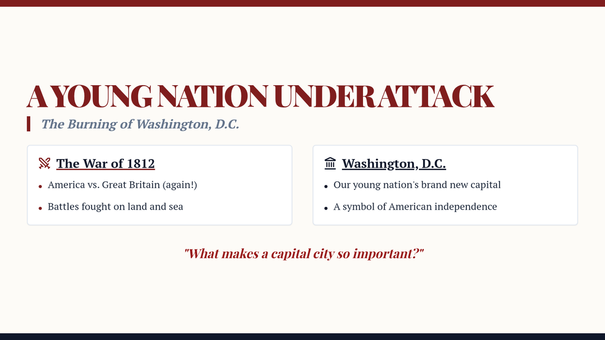 A dramatic exploration of the British burning Washington, D.C. in 1814, focusing on the resilience of a young nation and the heroics of Dolley Madison.