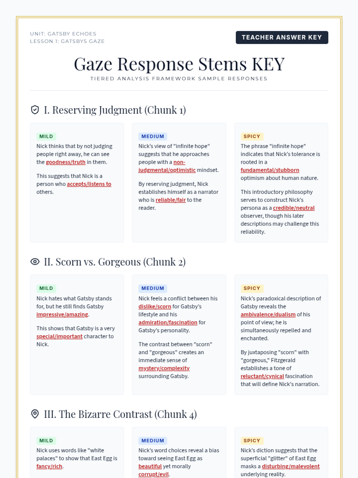 An introduction to Chapter 1 of 'The Great Gatsby', focusing on Nick Carraway's point of view and the established tone. Students analyze how the narrator's perspective shapes their initial impressions of West Egg and East Egg.