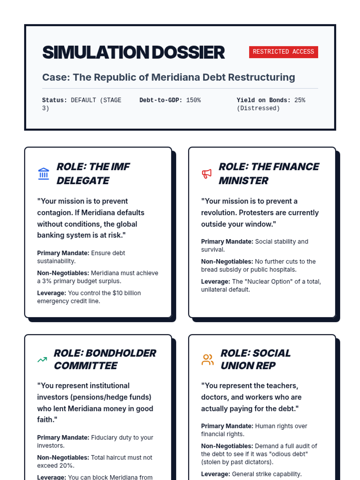 Examines sovereign debt crises, IMF conditionality, and the social costs of austerity measures through historical case studies.