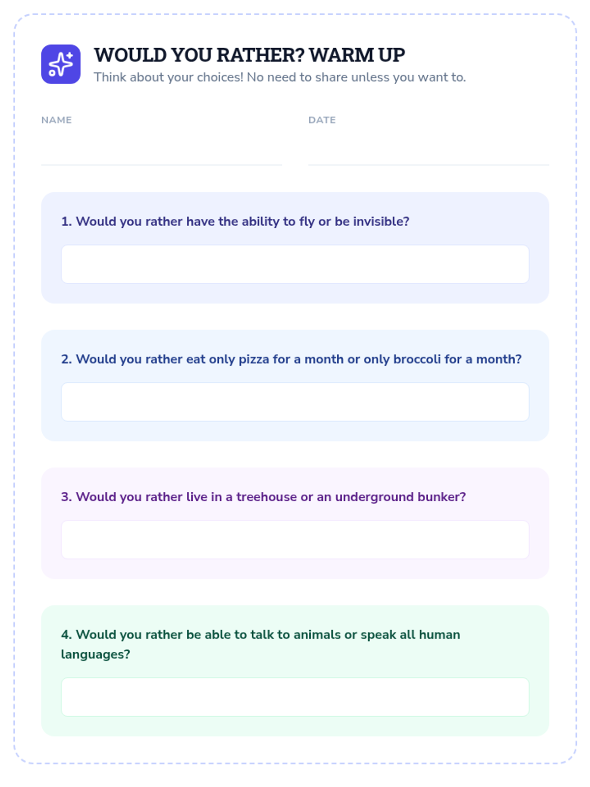 Practical team-based synergy challenges to apply collaborative problem-solving skills.