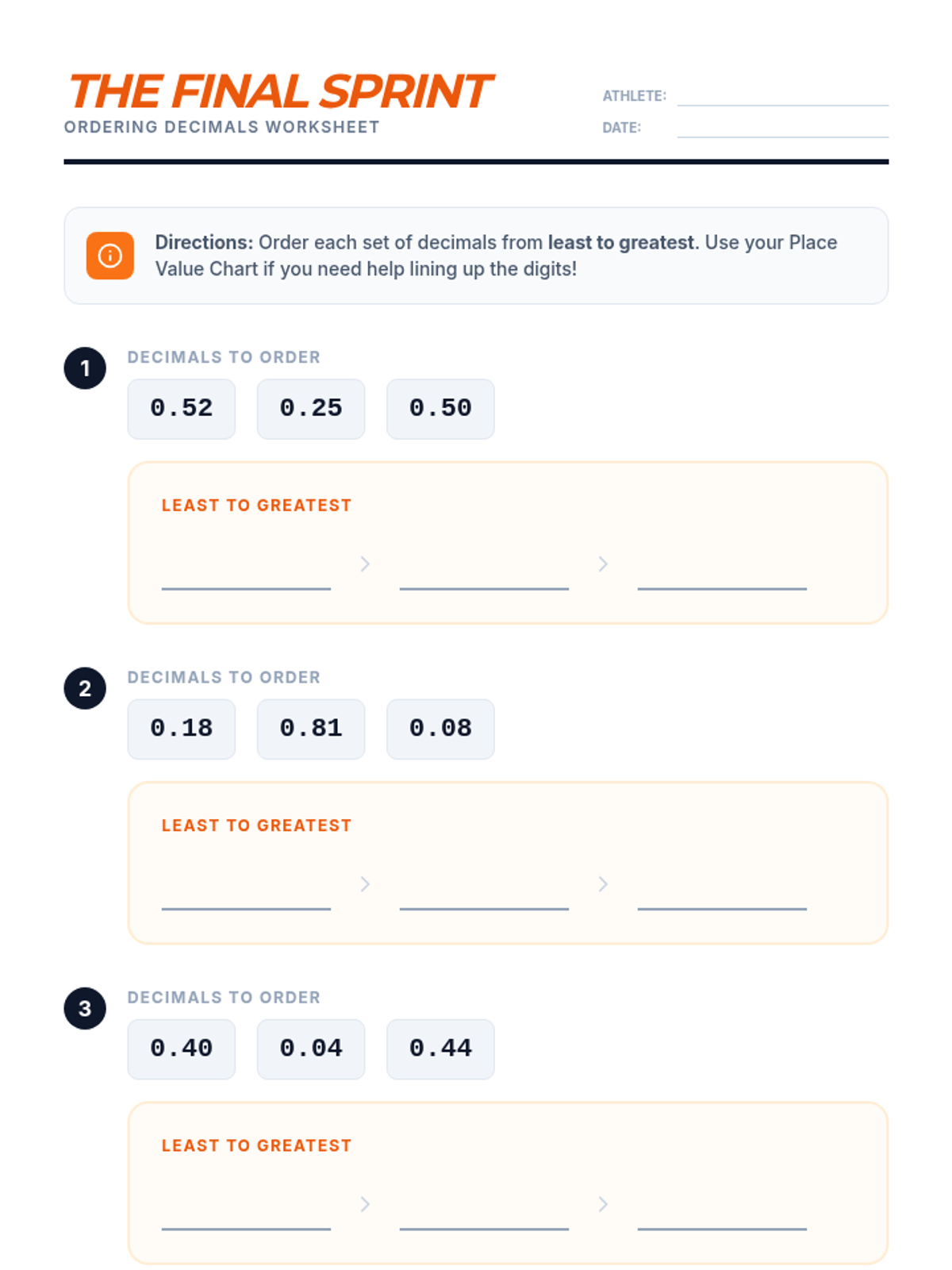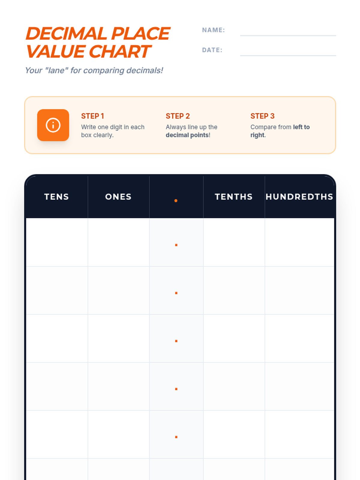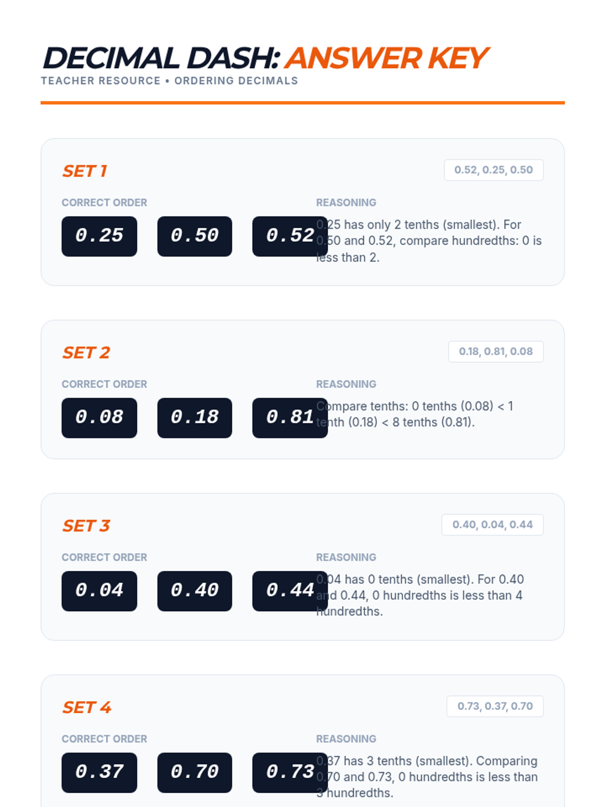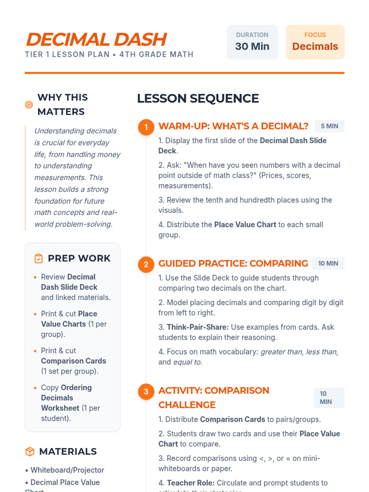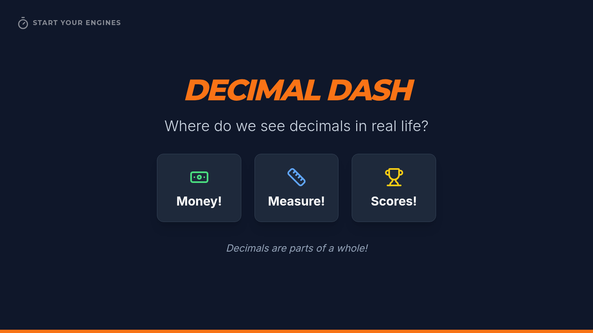 A high-energy 4th-grade lesson focusing on comparing and ordering decimals to the hundredths place through hands-on practice and interactive challenges.