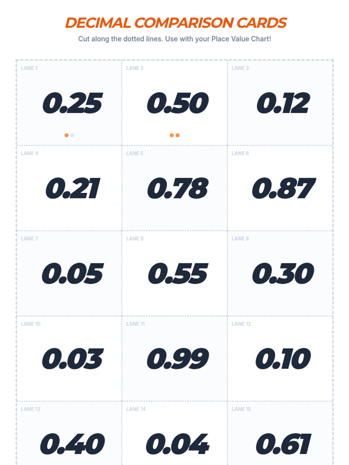 A collection of high-energy 4th-grade math games focused on decimal place value, comparison, and equivalent fractions. These games utilize 10-sided dice and spinners to make reviewing tenths and hundredths engaging and hands-on.
