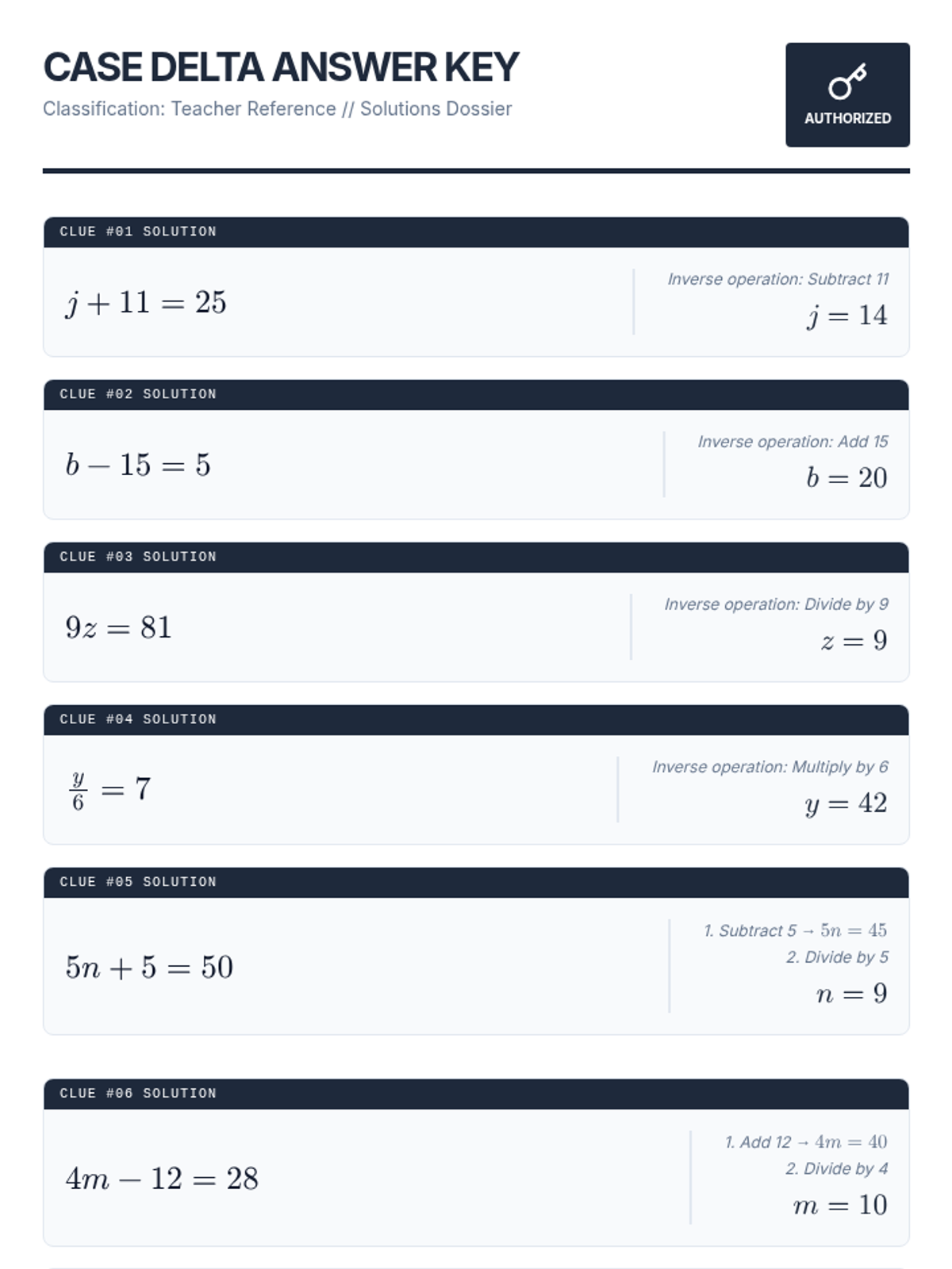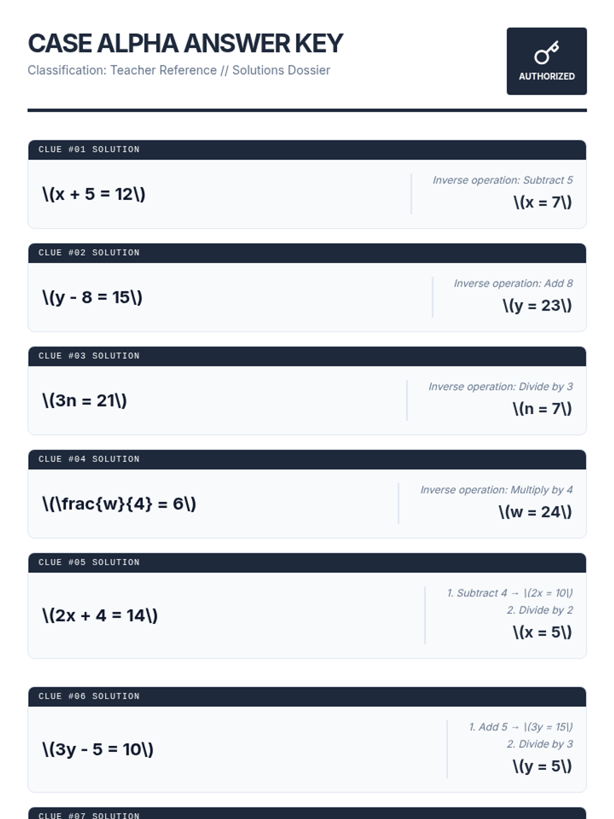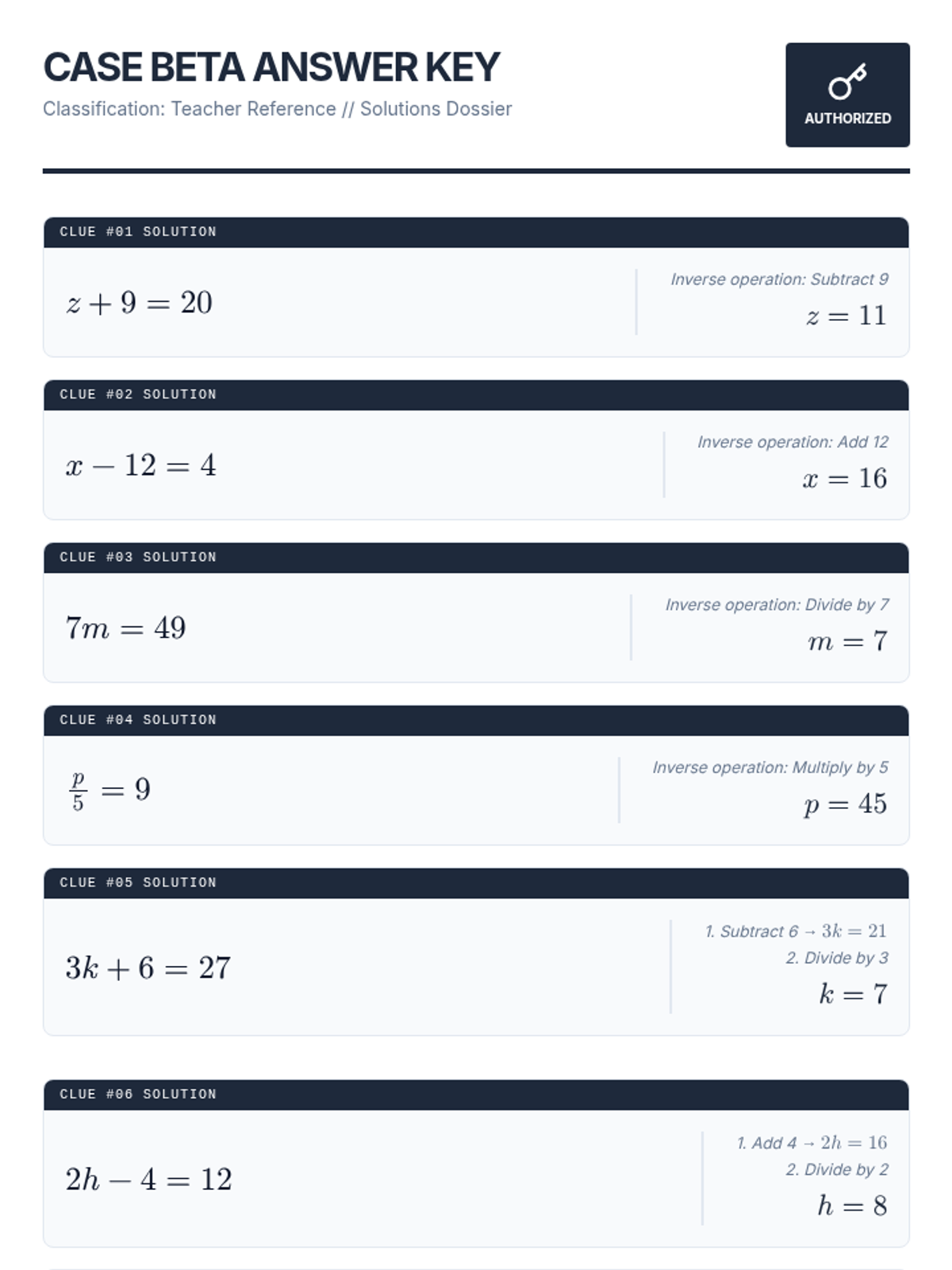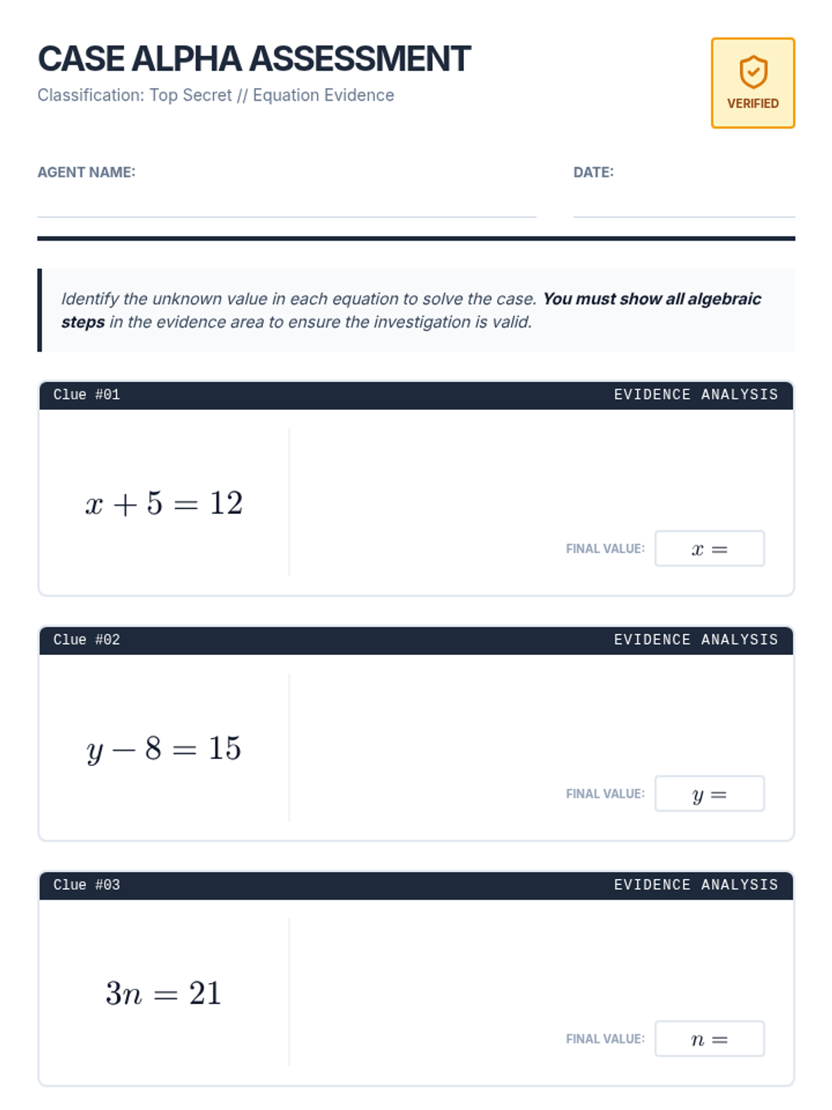 A foundational lesson on solving one-step equations using inverse operations, featuring a blueprint-inspired design to help students 'build' their algebraic skills.